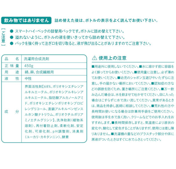 Product name: 送料300円(税込)■lc210■ごまかさない洗濯洗剤 消臭剤配合 スマート ハイ・ベック 詰替えパウチ 450g【シンオク】