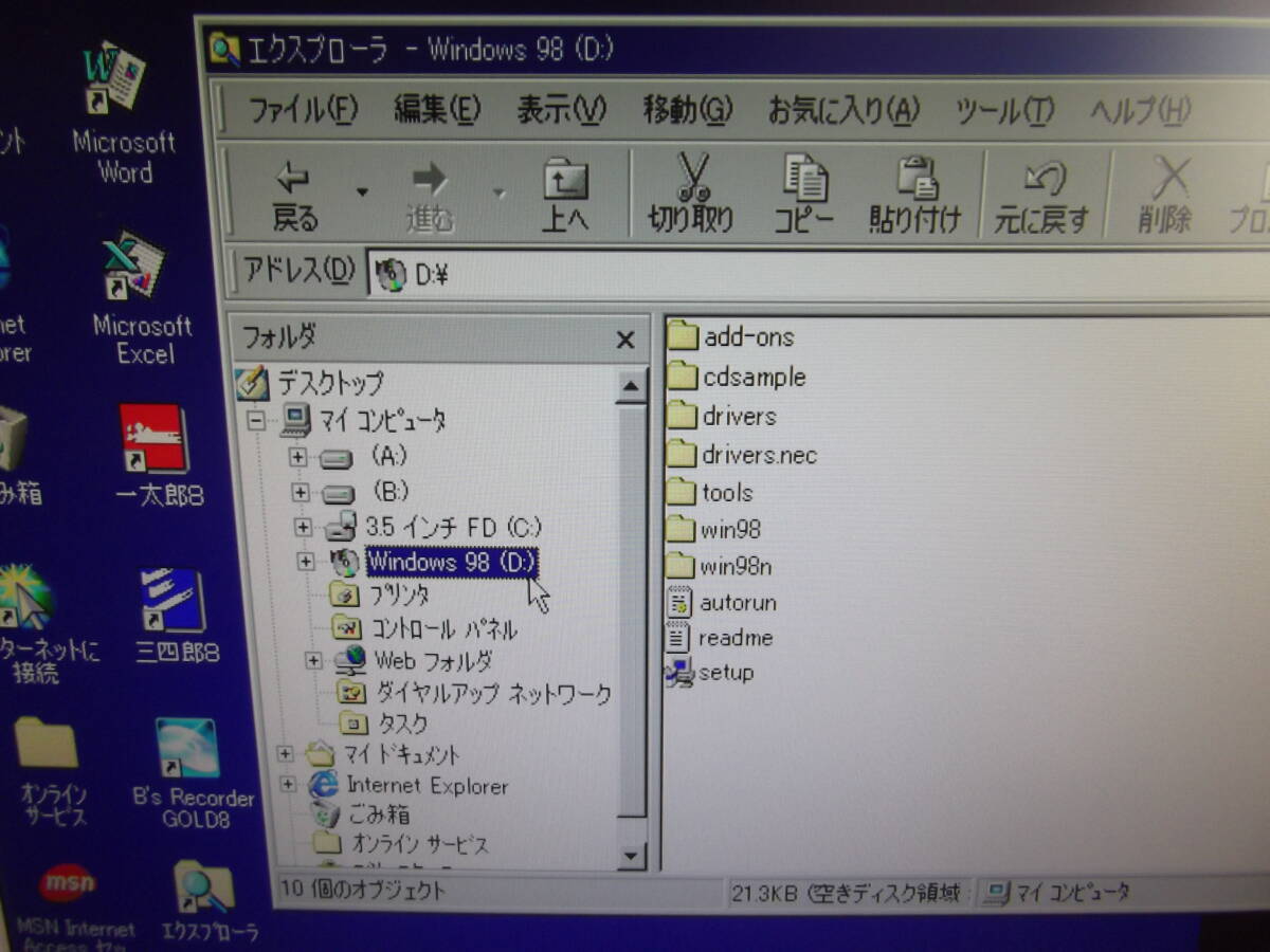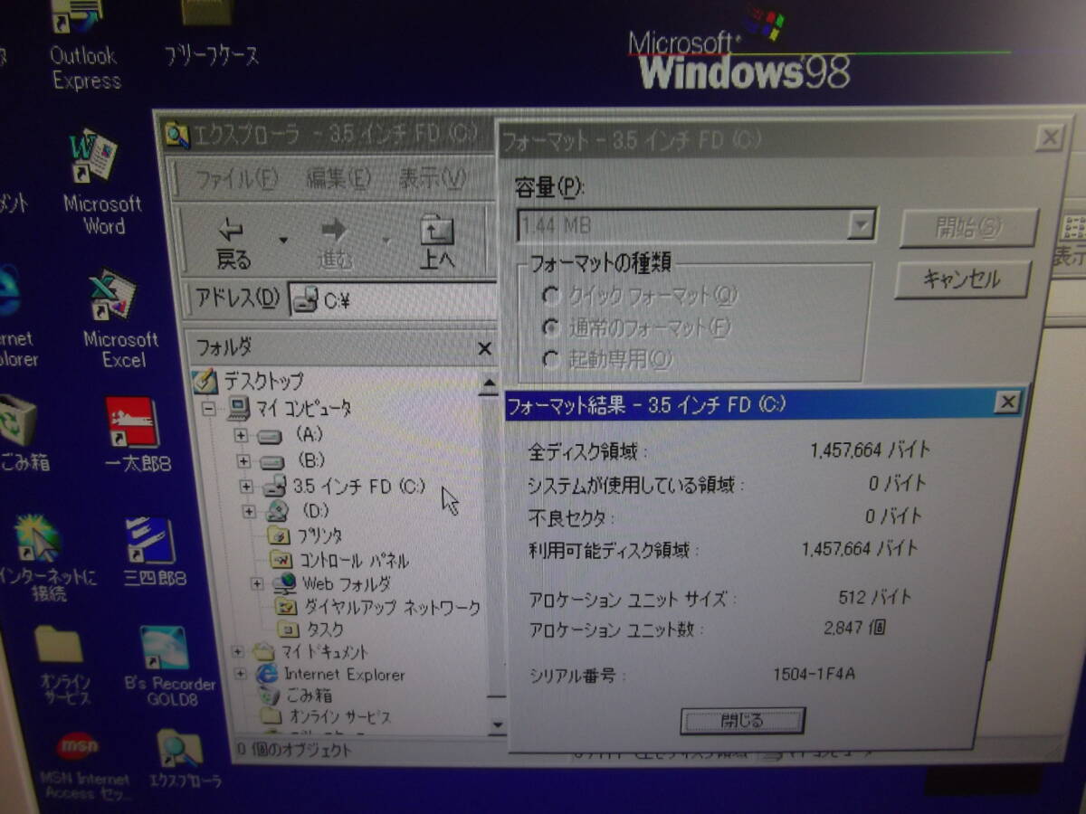 ・A ドライブ 2GB :Windows98SE(再インストール済)