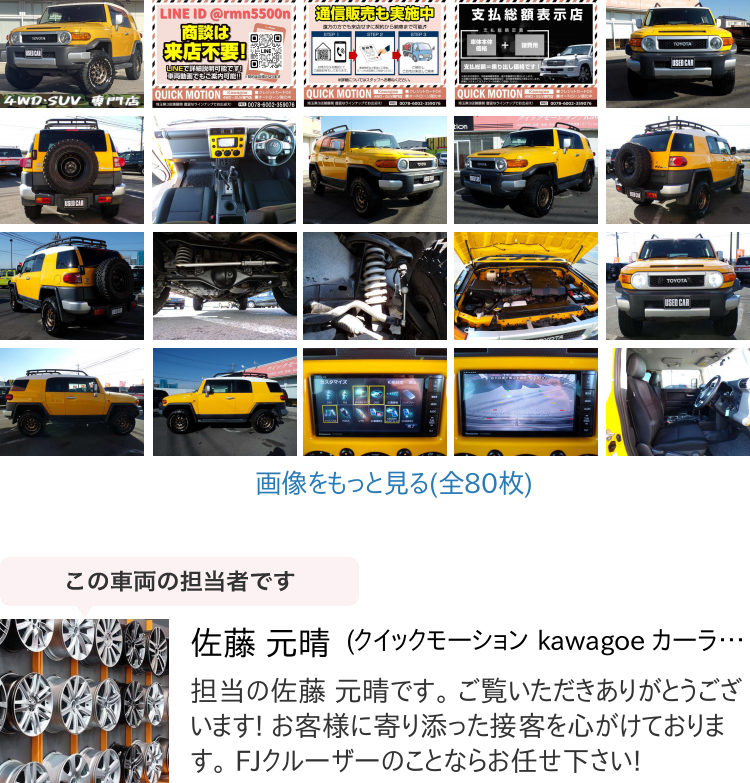 店頭商談中・売約済の場合もありますので、ご来店の際は事前にお問合せ頂き、該当車両の有無をご確認ください。