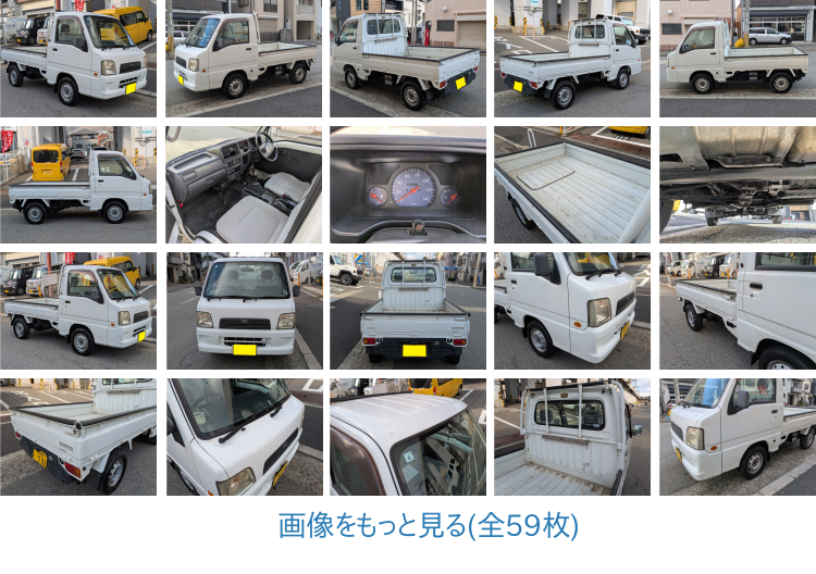 Store クルマ堂 売切り 神戸 実走6万キロ台 スバル サンバー 4WD 5MT パワステ エアコン 車検R8年4月 修復歴無し 軽トラ