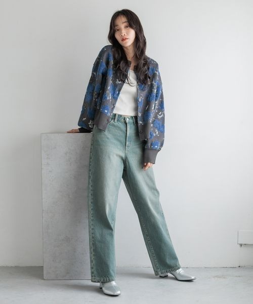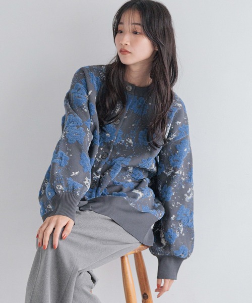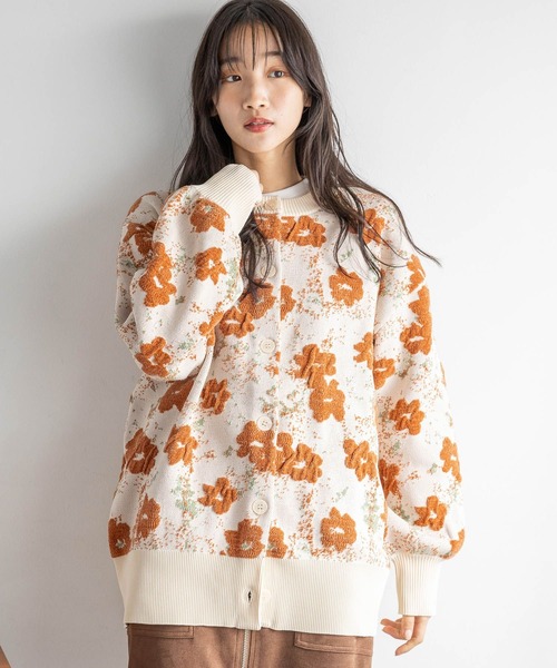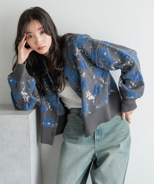 キーワード:カーディガン レディース ショート丈 花柄 長袖
