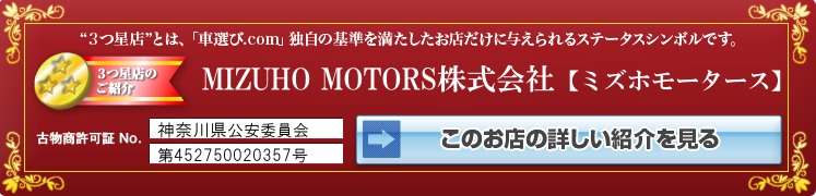 “3つ星店”とは「車選びドットコム」独自の基準を満たした販売店だけに与えられるステータスシンボルです。