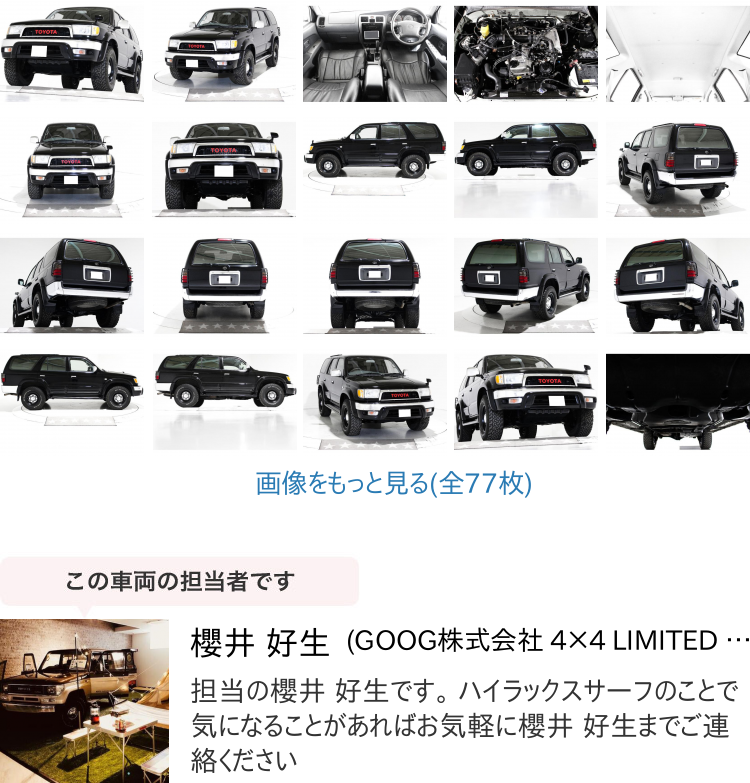 ランクル・サーフ・ハイエースをはじめクロカン・SUVを中心に100台以上の在庫がございます。