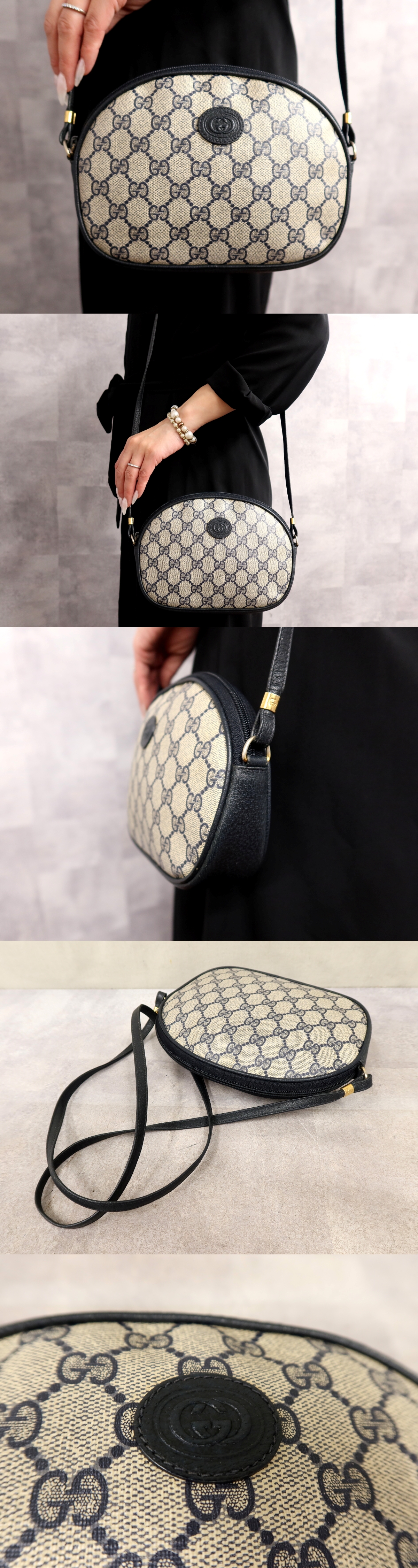 Store 超美品●GUCCI オールド グッチ●GGスプリーム●PVC カーフ レザー 本革●ショルダー バッグ●ネイビー 白●G金具●ヴィンテージ●Js67086