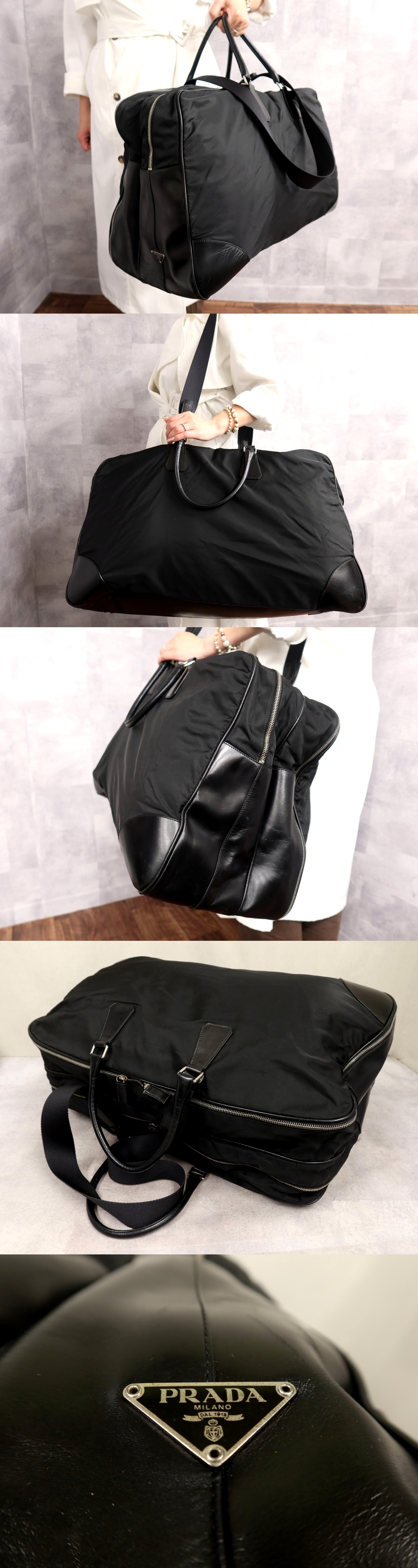 Product name: 超美品●PRADA プラダ●三角ロゴプレート●ポコノ ナイロン カーフ レザー 本革●2way ボストン バッグ●黒●SV金具●イタリア製●Js67240