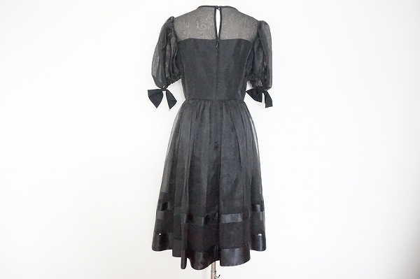#snc ユキトリイ YUKITORII ワンピース 9 黒 半袖 シースルー リボン レディース [700898]
