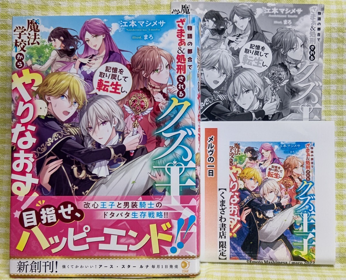 『 物語の都合でざまぁ&処刑されるクズ王子、記憶を取り戻して転生し、魔法学校からやりなおす! / 江本マシメサ:著 』(定価1,320円)、アース・スター ルナです。