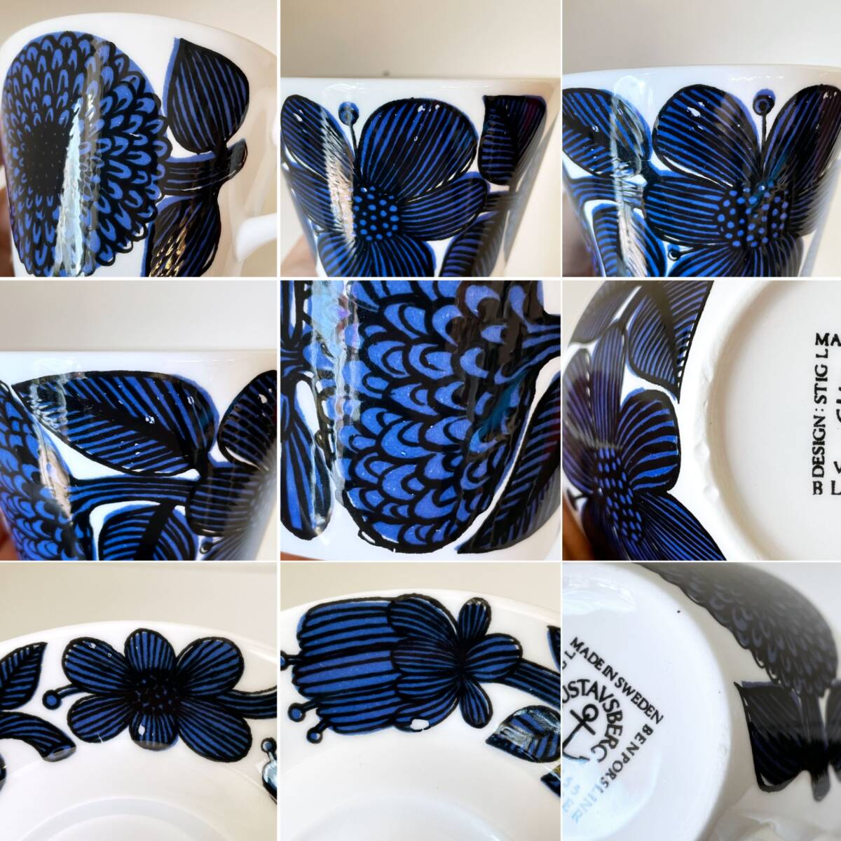 ◎ グスタフスベリ GUSTAVSBERG ブルーアスター BLUE ASTER コーヒーカップ&ソーサー スティグ・リンドベリ 北欧 ビンテージ A