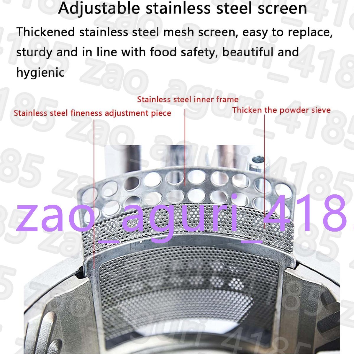 • 適用乾燥材料:各種穀物、大豆、黒米、トウモロコシ、米、小麦、大麦、オート麦、ライ麦、そば、緑豆、小豆、コーヒー豆、高麗人参、レンゲ、メドラー、霊芝、ゴマ、ピーナッツ、クルミなど。注意: 油性、粘性、および水分を含む材料は直接粉砕できません。