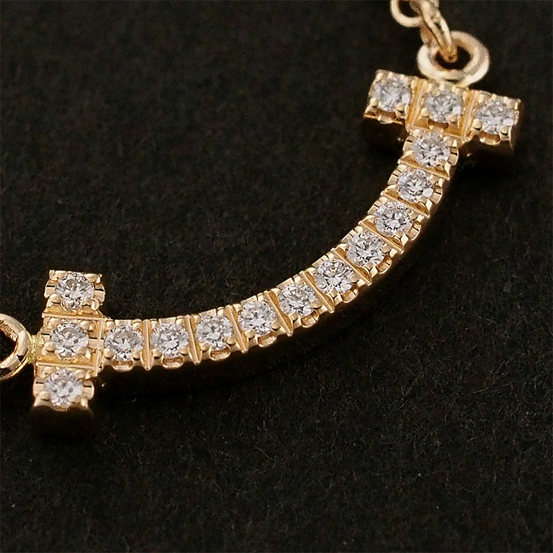 備考:ティファニーのデザイン・ディレクターに就任したフランチェスカ・アムフィテアトロフが初めて手掛けたブランドイニシャルである「T」をモチーフとした大人気のTスマイルコレクションから、18金ピンクゴールドにダイヤモンドをあしらったとても素敵なネックレスです。仕上済。