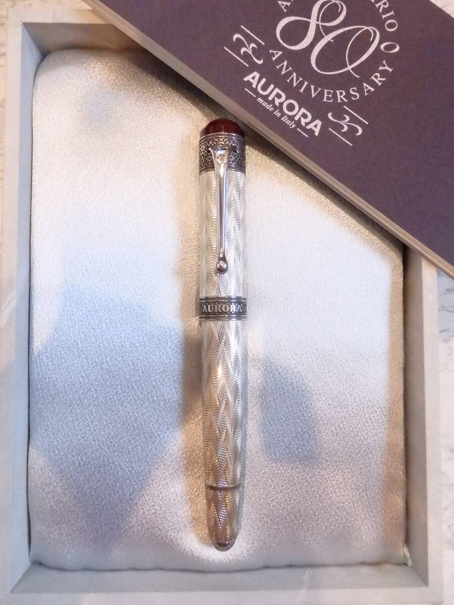 ◆【新品・未使用】アウロラ 80周年記念 スターリングシルバー限定万年筆 ペン先:18K750 M