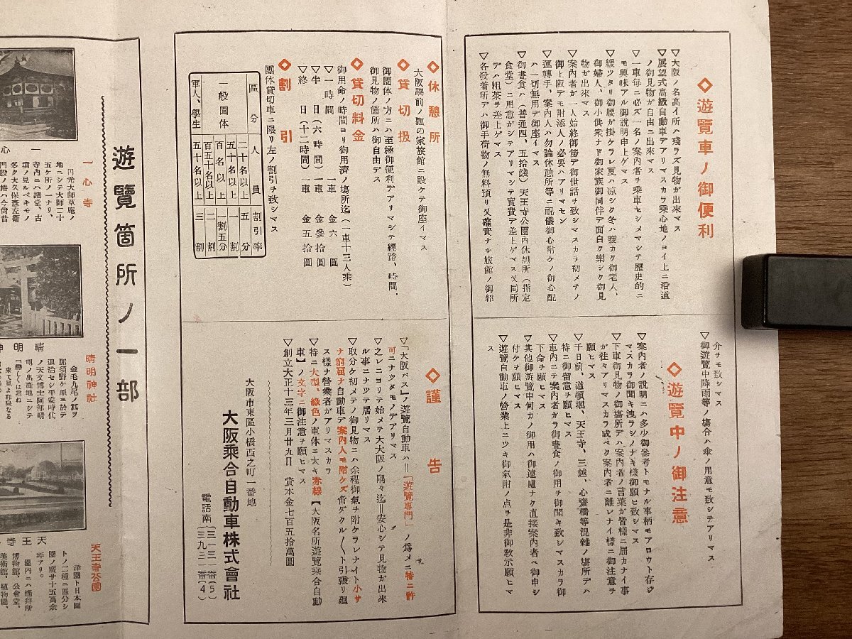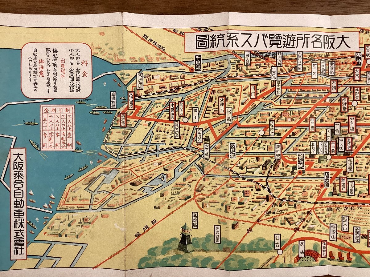 RR-8833■送料込■大阪名所遊覧自動車 大阪府 名所案内 マップ ガイド バス系統図 道頓堀 難波橋 地図 写真 冊子 観光 案内 印刷物 /くOKら