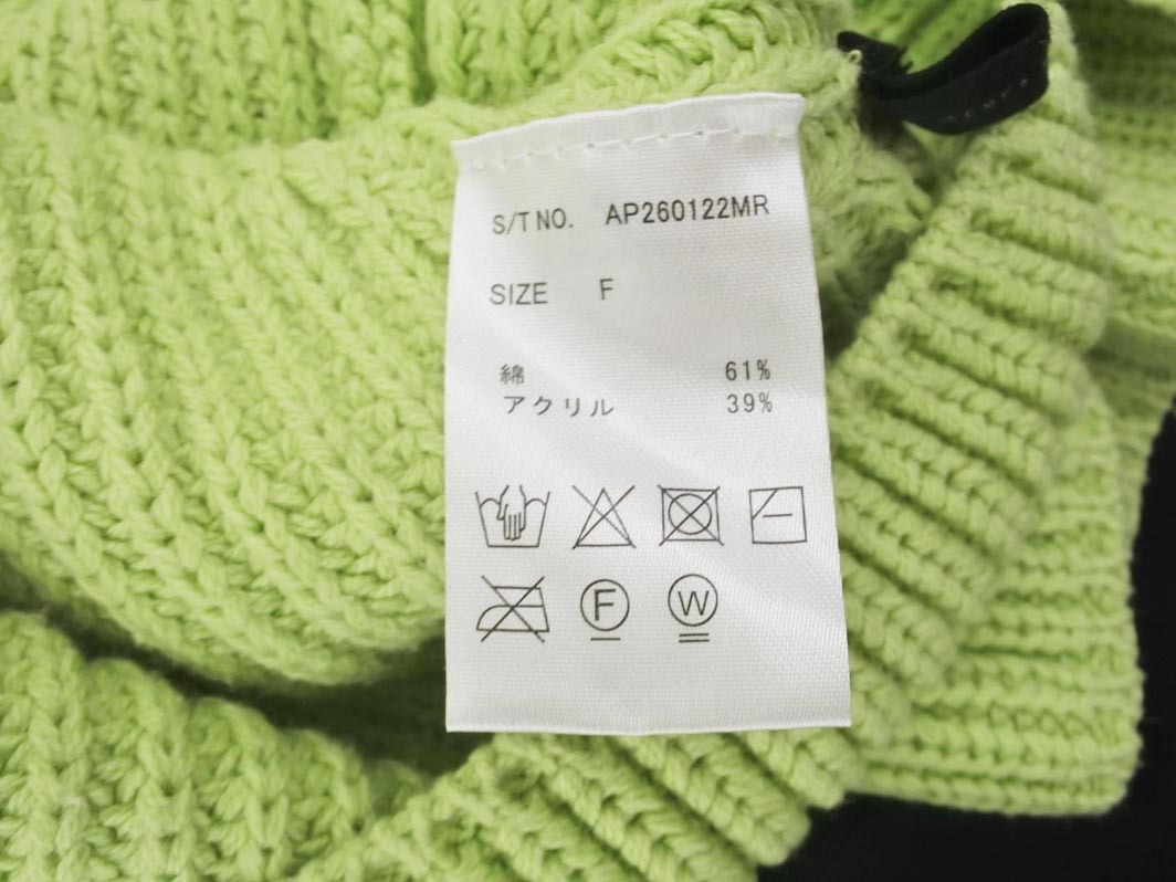 apart by lowrys アパートバイローリーズ リブ モックネック ニット セーター sizeF/黄緑 ◇■ ☆ elb9 レディース