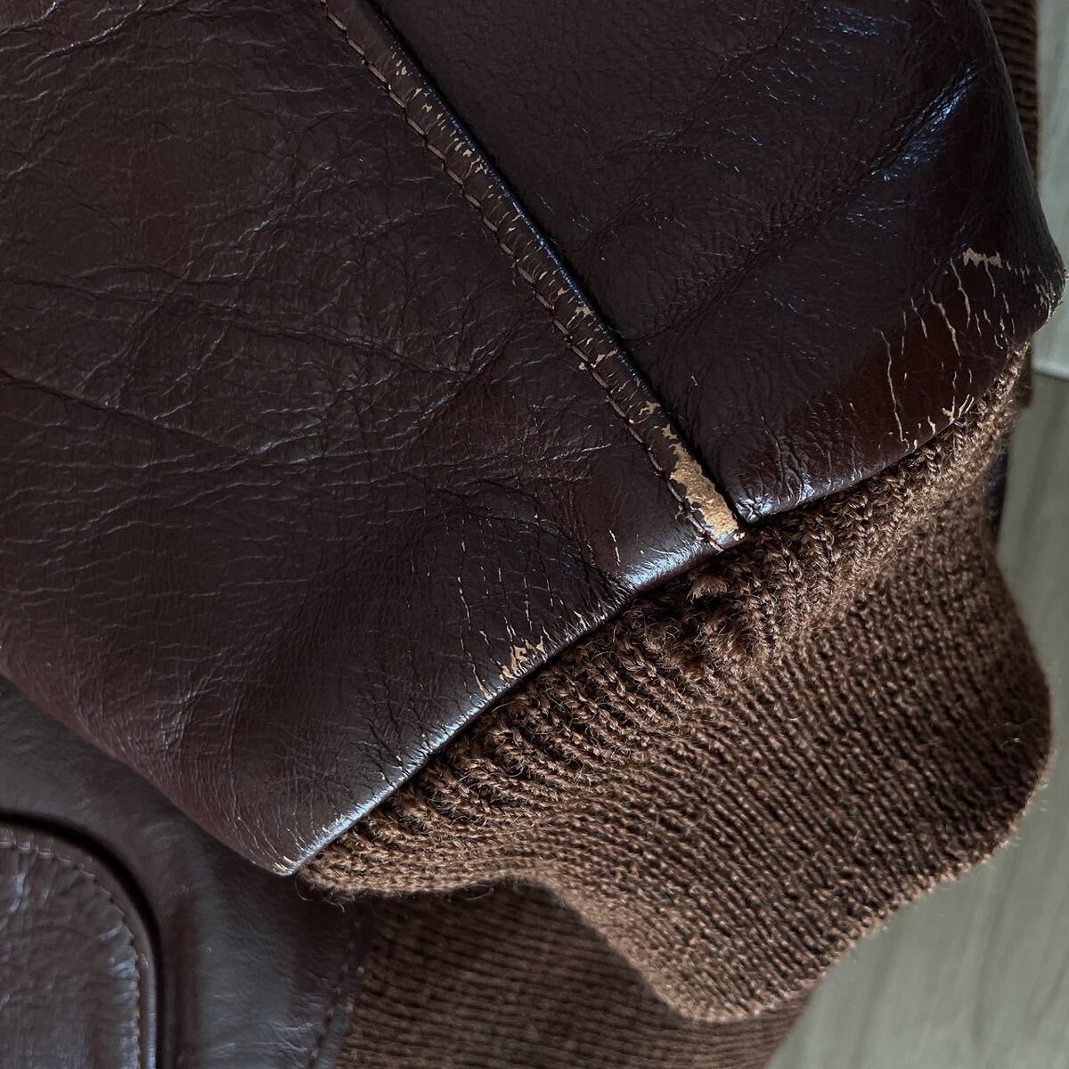 革製品特有の使用感(袖部などフィニッシュ落ちや小キズ、スレなど)ありますが、なかなか良いエイジングです。とは言え革の状態は良いのでまだまだこれから育て甲斐のある一着です。