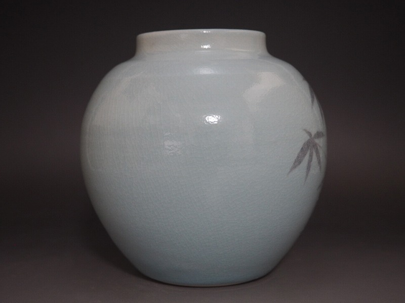 Product name: C0485 瀬戸焼 兎月窯 杉浦文泰 作 淡青白 花瓶 共箱付 ☆ 花道具 華道具 花器 花入 花生 飾壷 飾壺 陶器 作家物 在銘 陶印 美品 良品 無傷