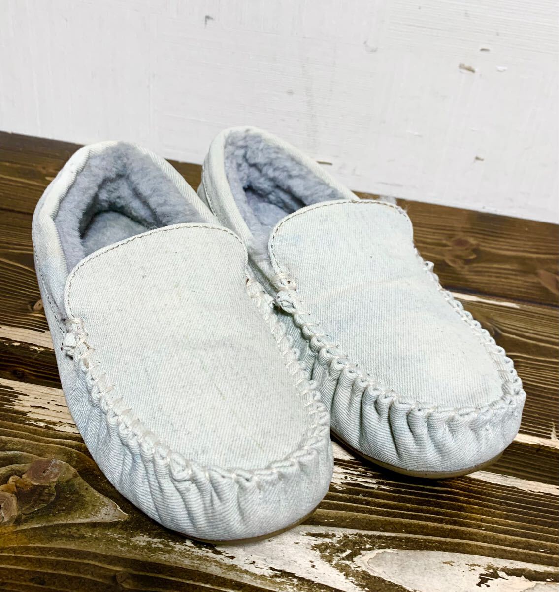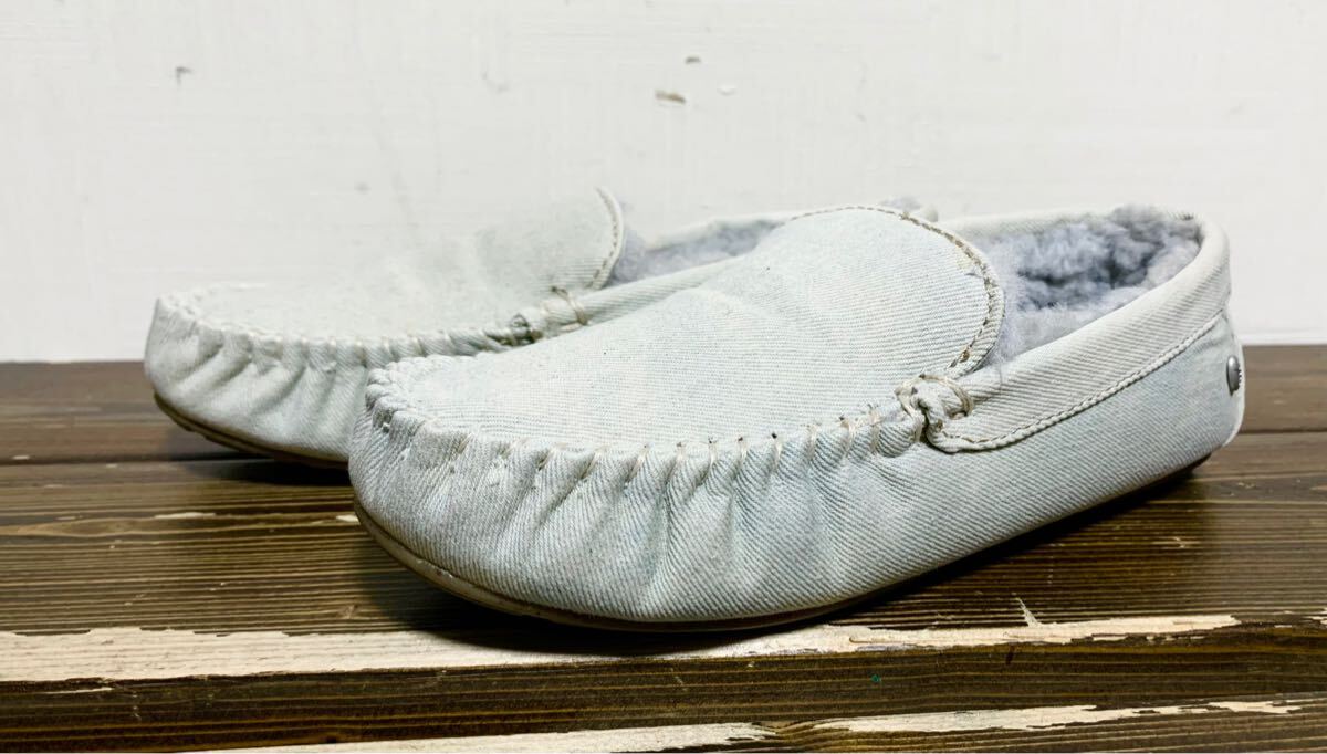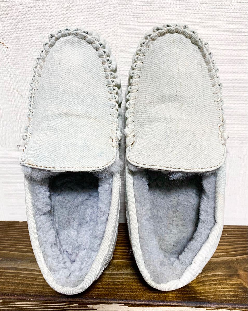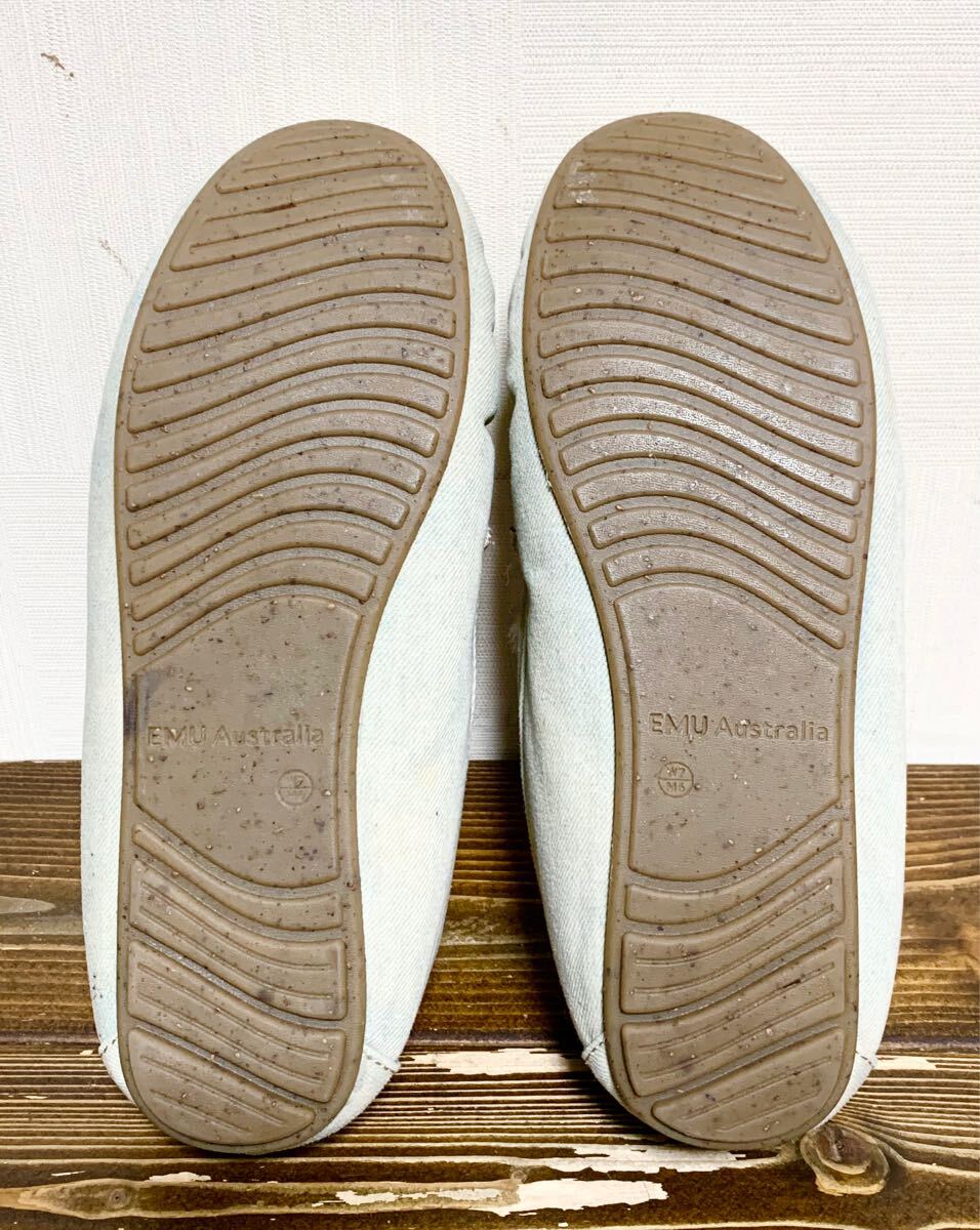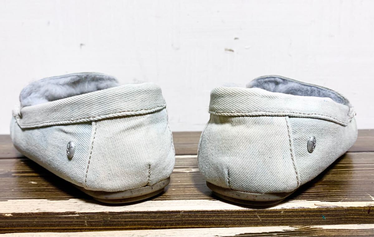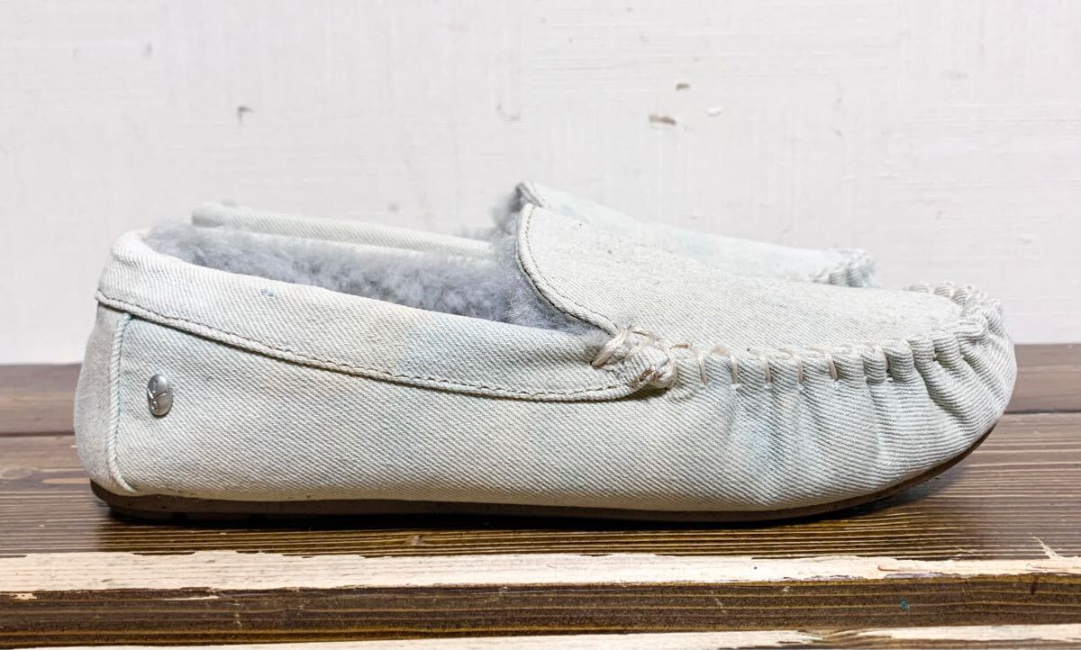 極上:emu(エミュー).リアル ムートン レザー スリッポン シューズ 24(レディース/表面 デニム/内側 羊毛革/保温性抜群/ローファー/ugg type