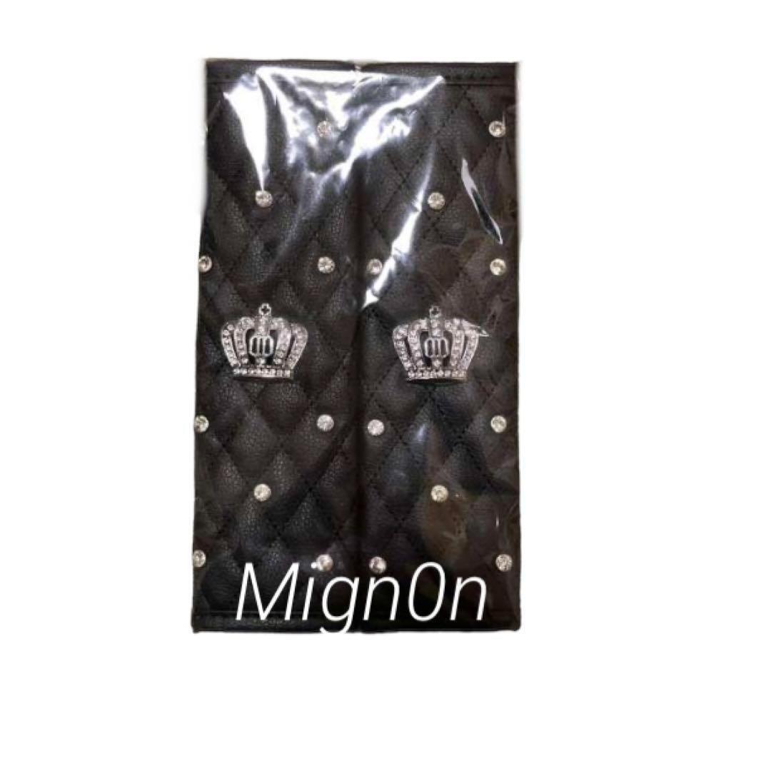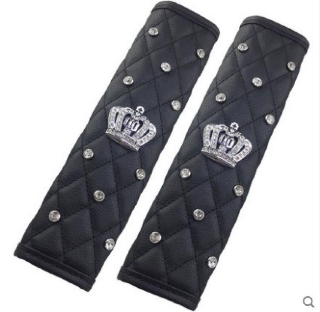 ブラック クリスタル シートベルトカバー キラキラ 王冠 モード シンプル モノトーン ゴージャス