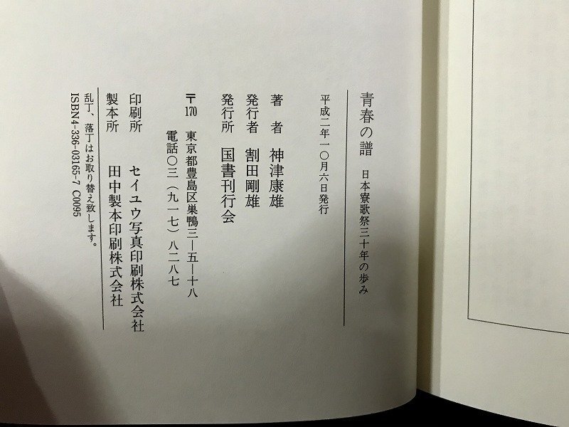 wΨ* 青春の譜 日本寮歌祭30年の歩み 著・神津康雄 平成2年 図書刊行会 古書 / F19