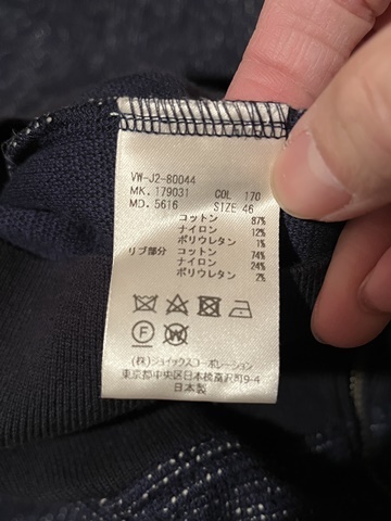 実寸は、肩幅約44cm、身幅(脇下)約51.3cm、袖丈約59cm、着丈約79.5cmです。