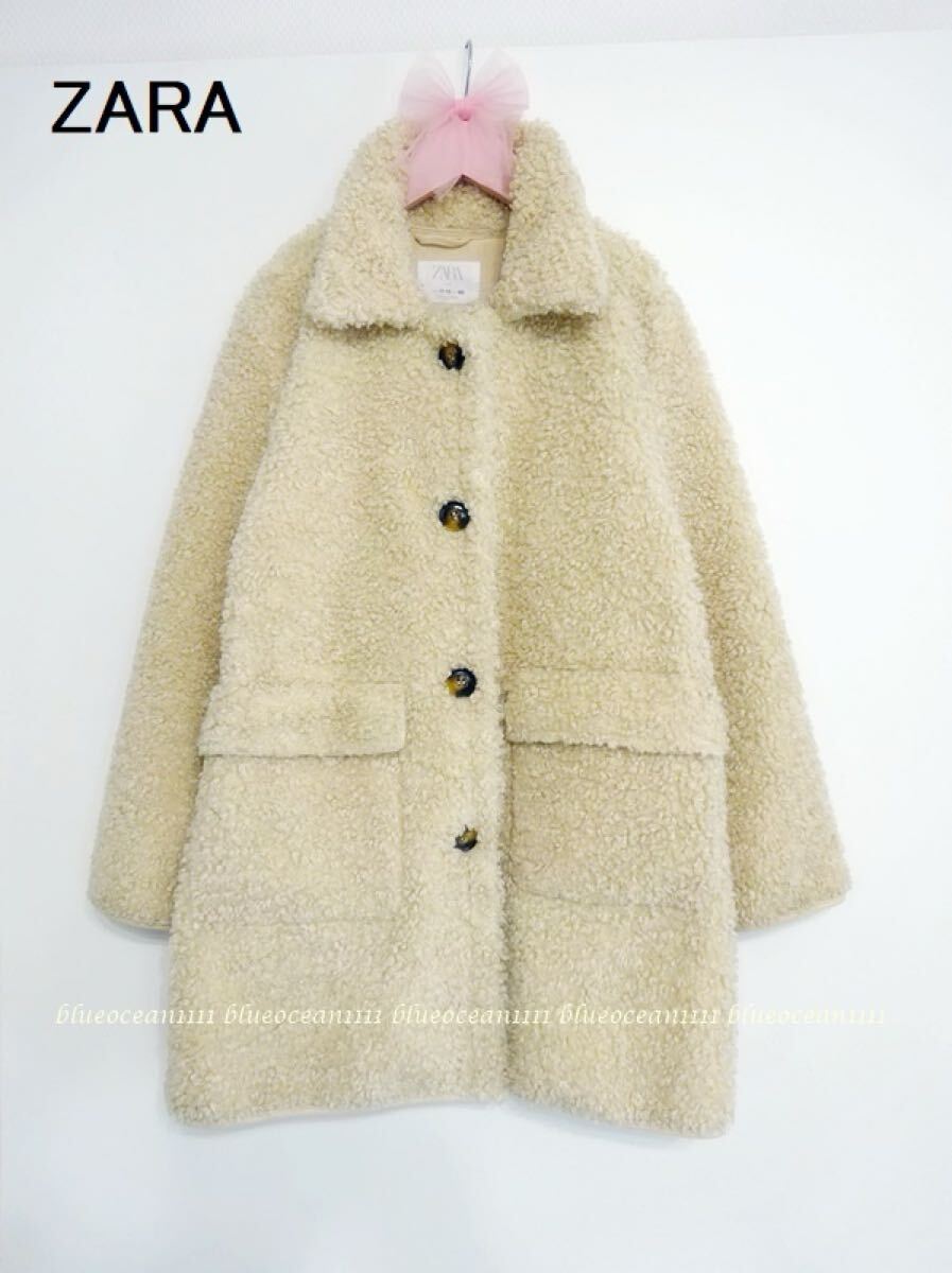 お上品でオシャレ感あり エクリュベージュ【ZARAザラ】ダブルフェイス ボアコート150cm (140) スカート パンツ Tシャツ カーデ トレーナー