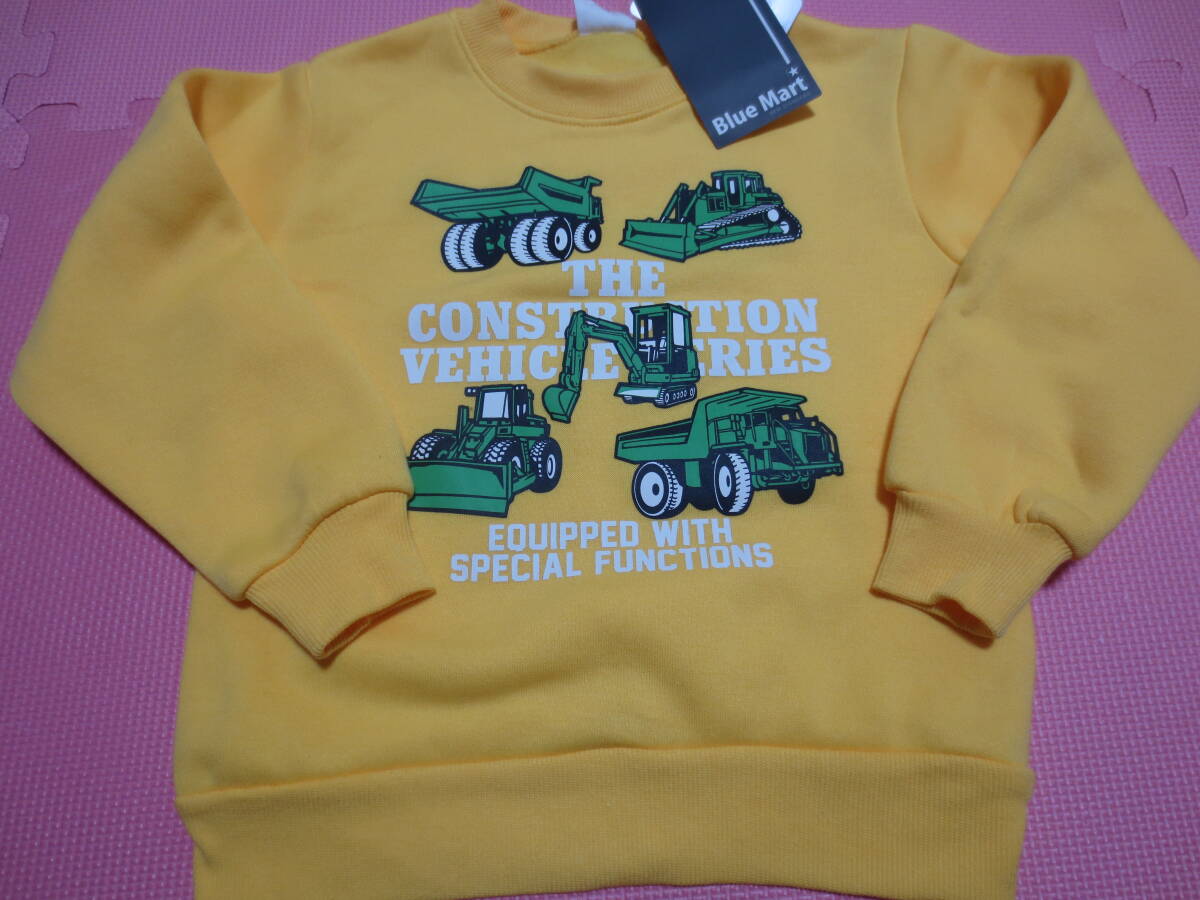 Product name: 新品 110 働く車柄 長袖トレーナー パワーショベル ブルドーザー ダンプカー 重機 子供 男の子 冬物 裏起毛 はたらくくるま 100〜 送料無料