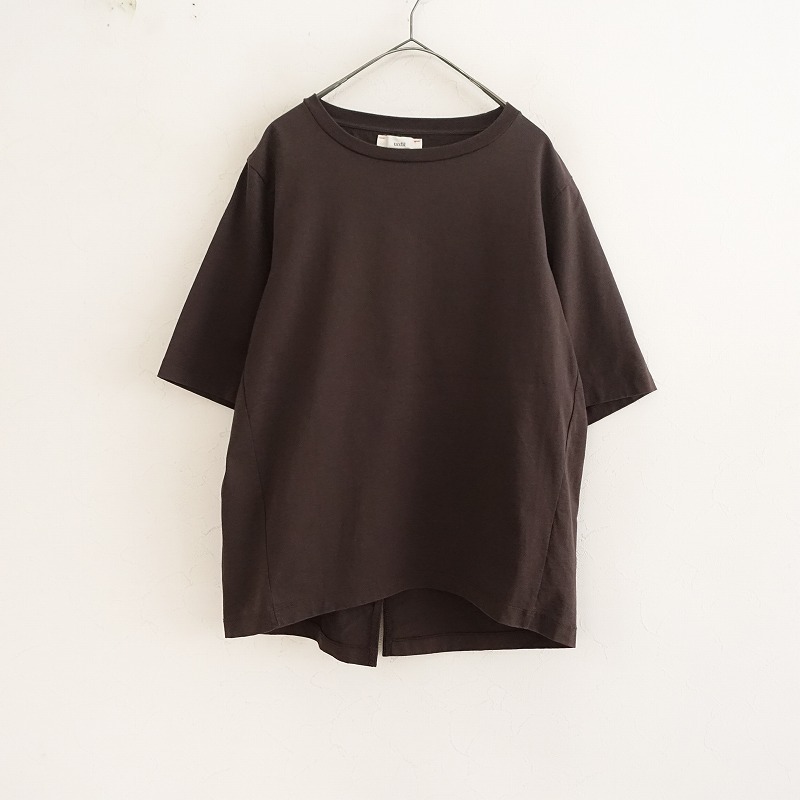 【定価1.2万】アンフィル unfil *バックスリットカットソー*0綿天竺ブラウン濃茶プルオーバー半袖Tシャツ(25-2409-360)【81J42】
