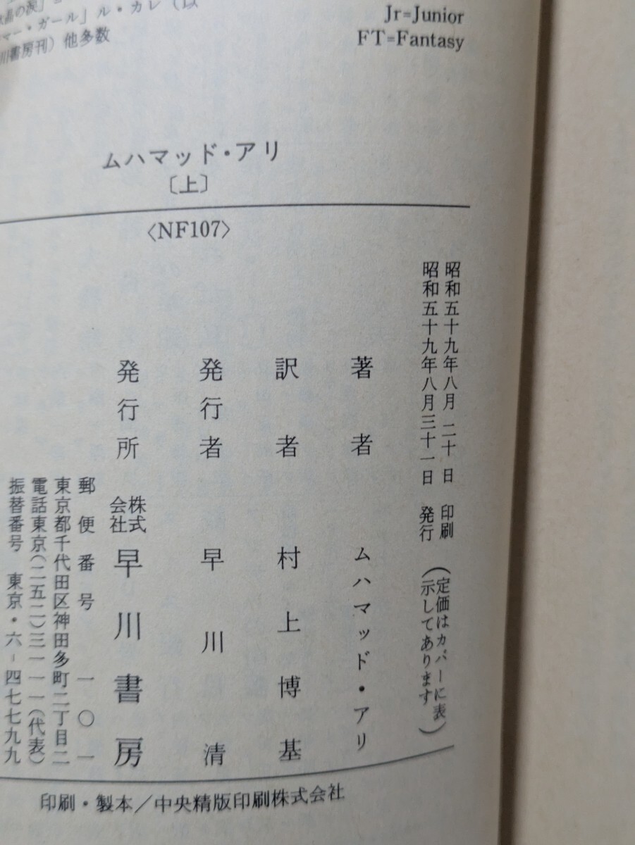 Product name: 【初版】ムハマッド・アリ わが魂の戦歴 上下全2冊セット モハメド・アリ自伝 村上博基/訳 ハヤカワ文庫NF ノンフィクション