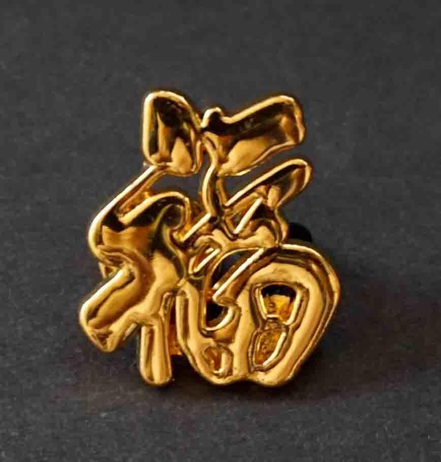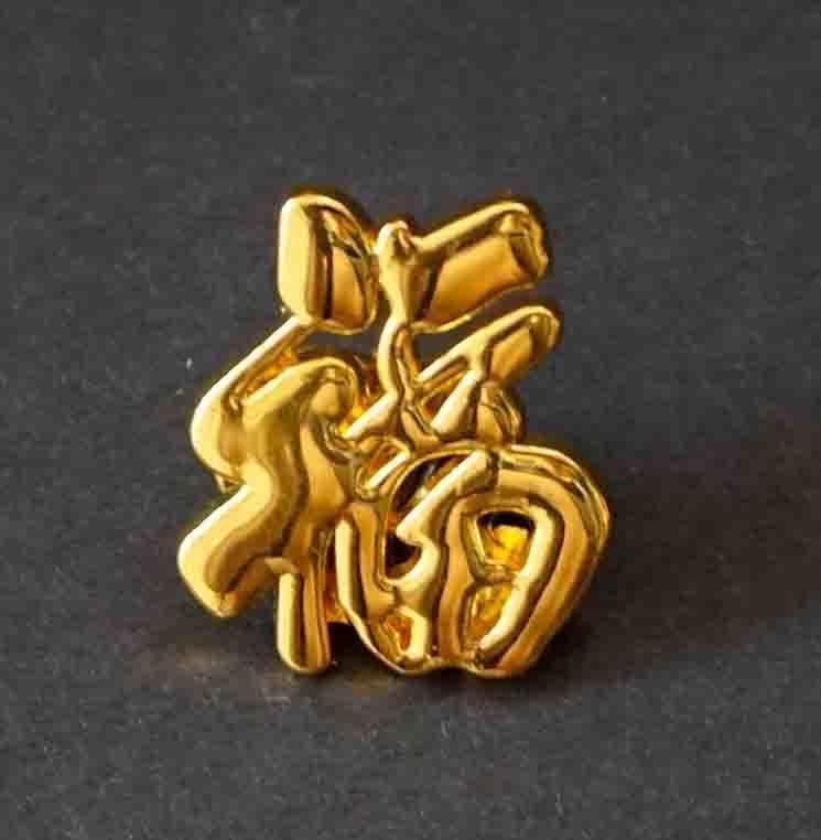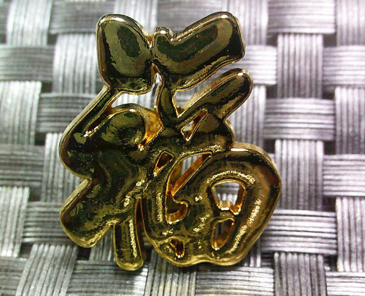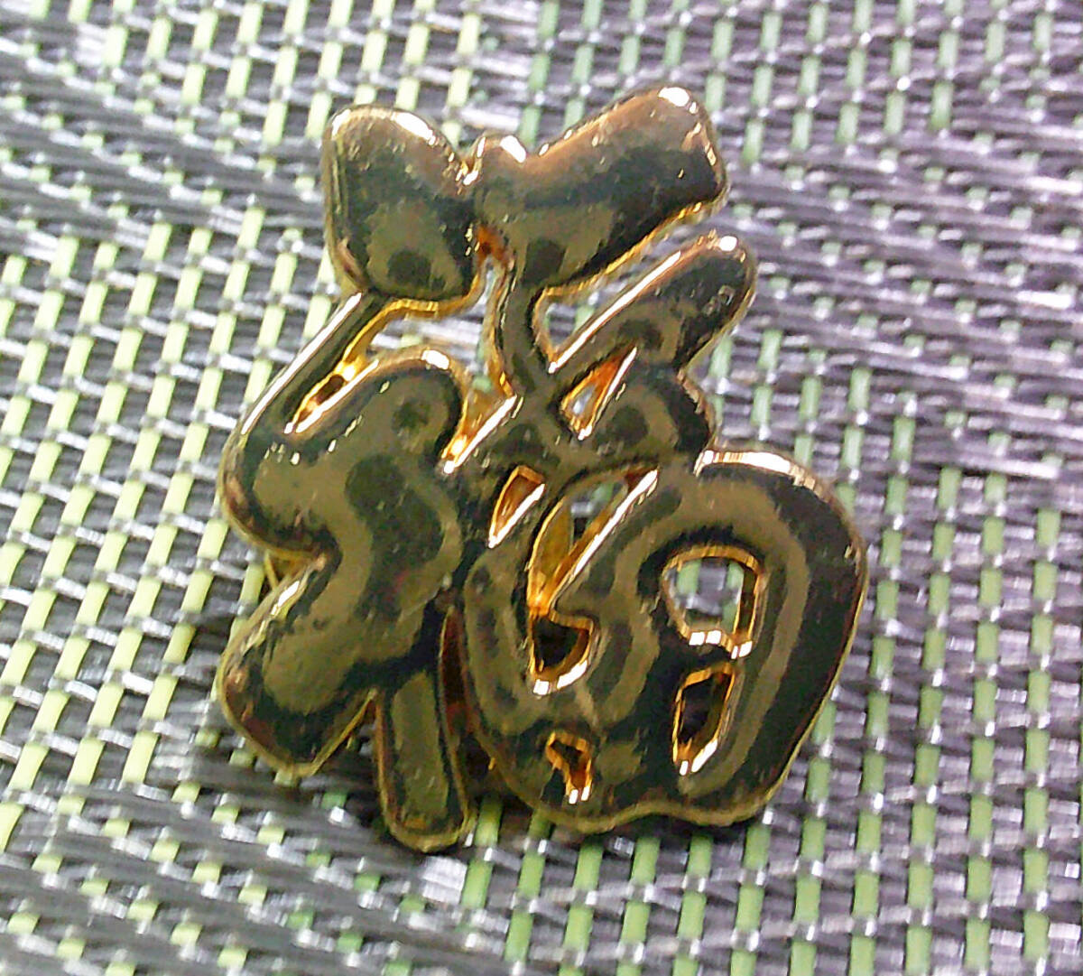 《金福CN》金福CNデカ漢字ロゴ■新品『ゴールデン 福 』■キラキラ■ 金属 激渋 ピンバッジ バッチ ■おしゃれ■《開運 ラッキーアイテム》