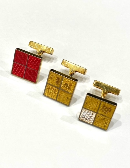●F7-6-101 LOUISVUITTON ヴィトン ルイヴィトン LV カフス SV925 ダミエ 3点セット イエロー レッド