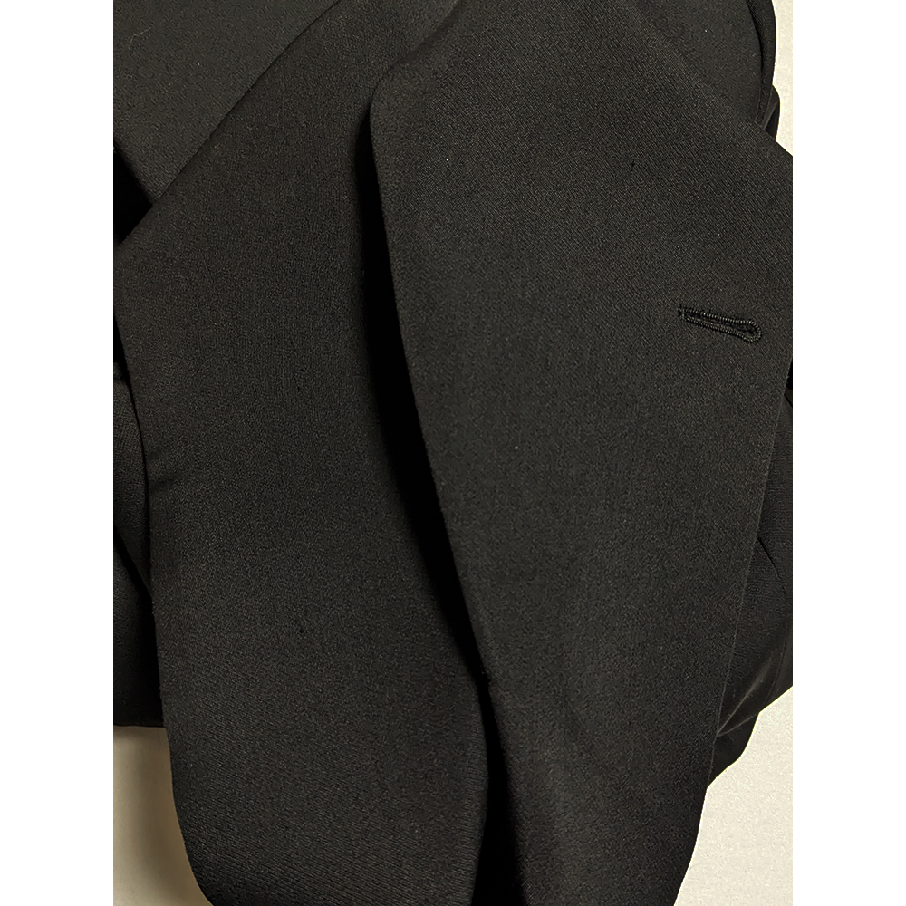 軽い着用感程度で綺麗な状態です。 襟上角中頃に若干の擦れ感、袖口裏角に軽い擦れ汚れ感、ラペル表面に数か所微細な引っ掛け(画像7)、など生じています。