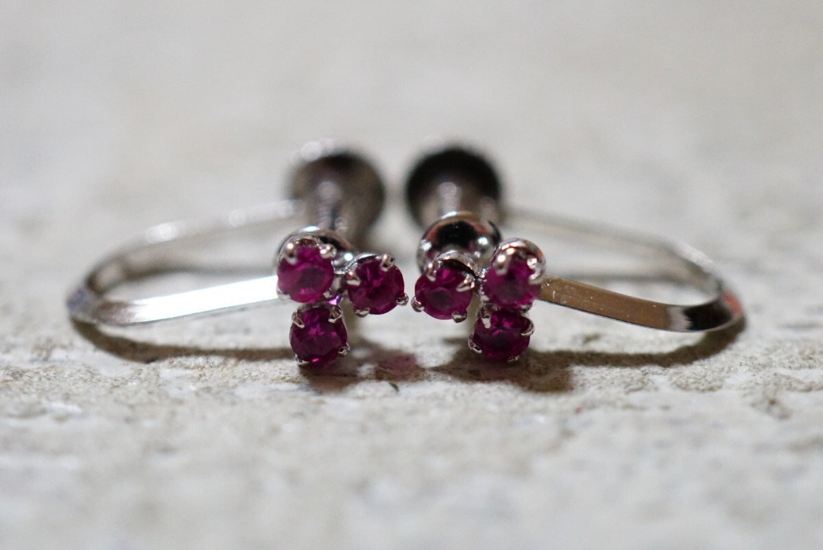 1089 天然ルビー イヤリング 両耳揃い ヴィンテージ アクセサリー SILVER刻印 天然石 宝石 色石 カラーストーン 装飾品