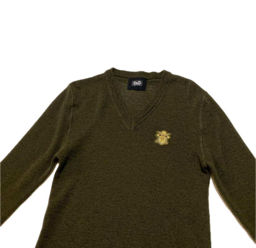 Product name: 春夏メンズ DOLCE&GABBANA/D&G 羊毛/VERGINE WOOL ハイゲージ エンブロイダリー カーキ Vネック ニット セーター スプリングニット