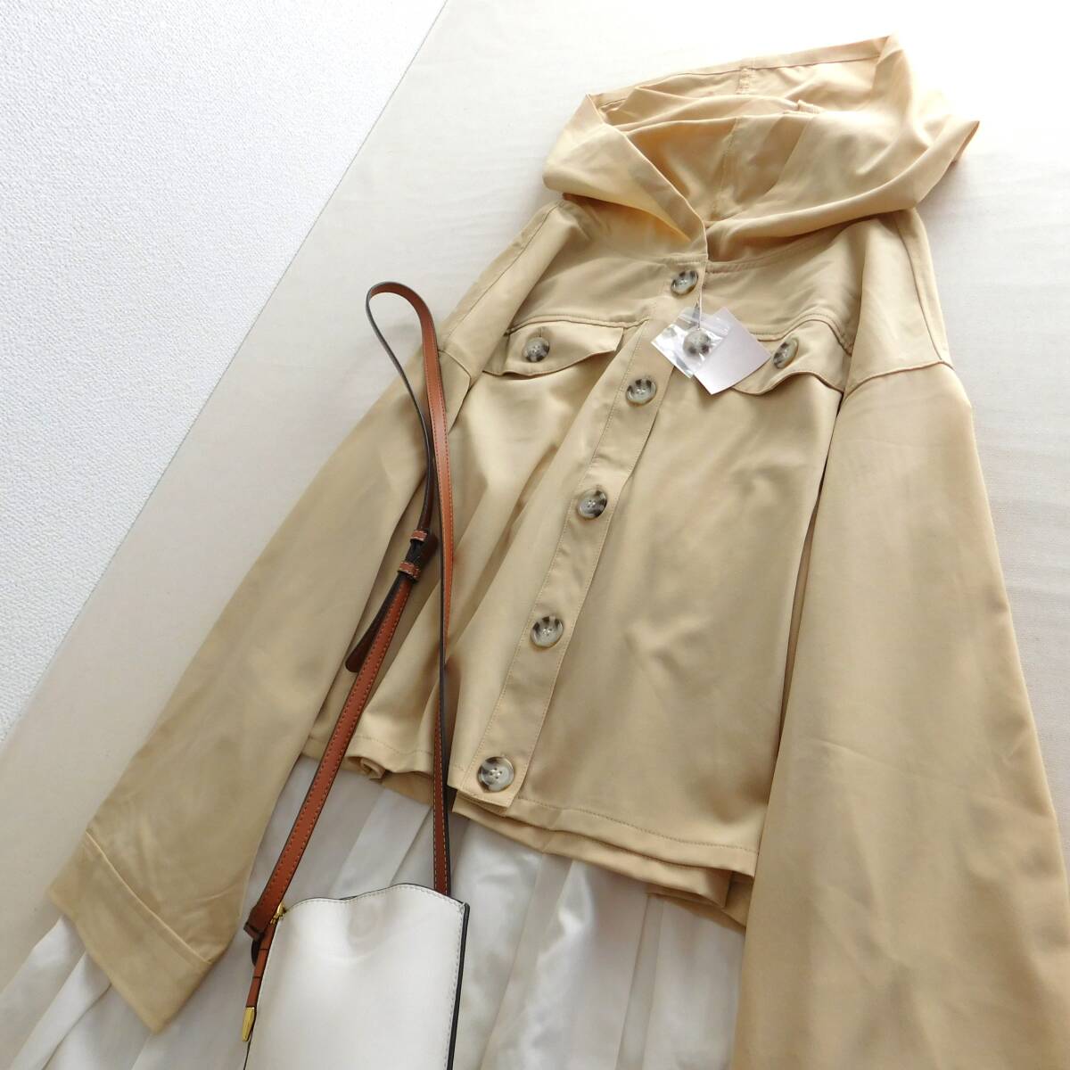 ベージュカラーのパーカーブルゾン
