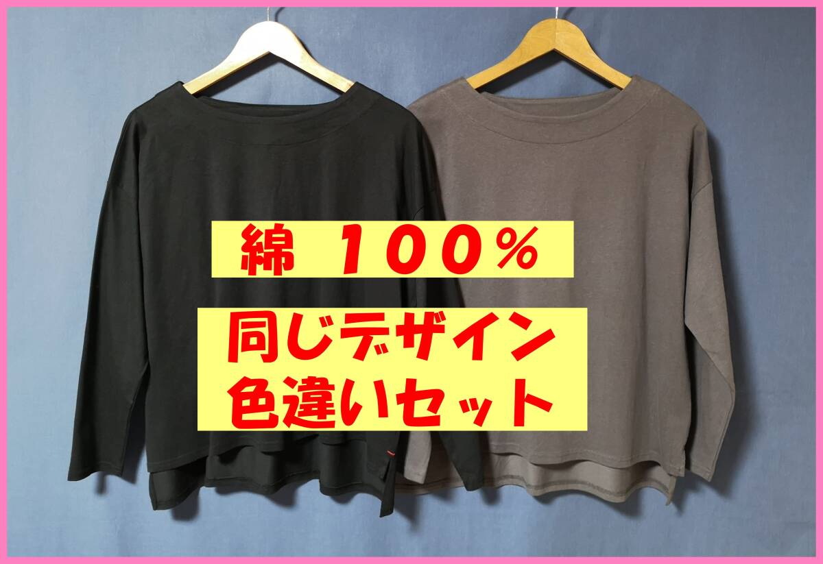 Product name: TSET‐457☆春秋☆新品☆送料込み☆即決☆ナチュラル系☆綿☆Tシャツ☆色違い☆2枚セット☆M~Lサイズ☆黒と濃いグレー系