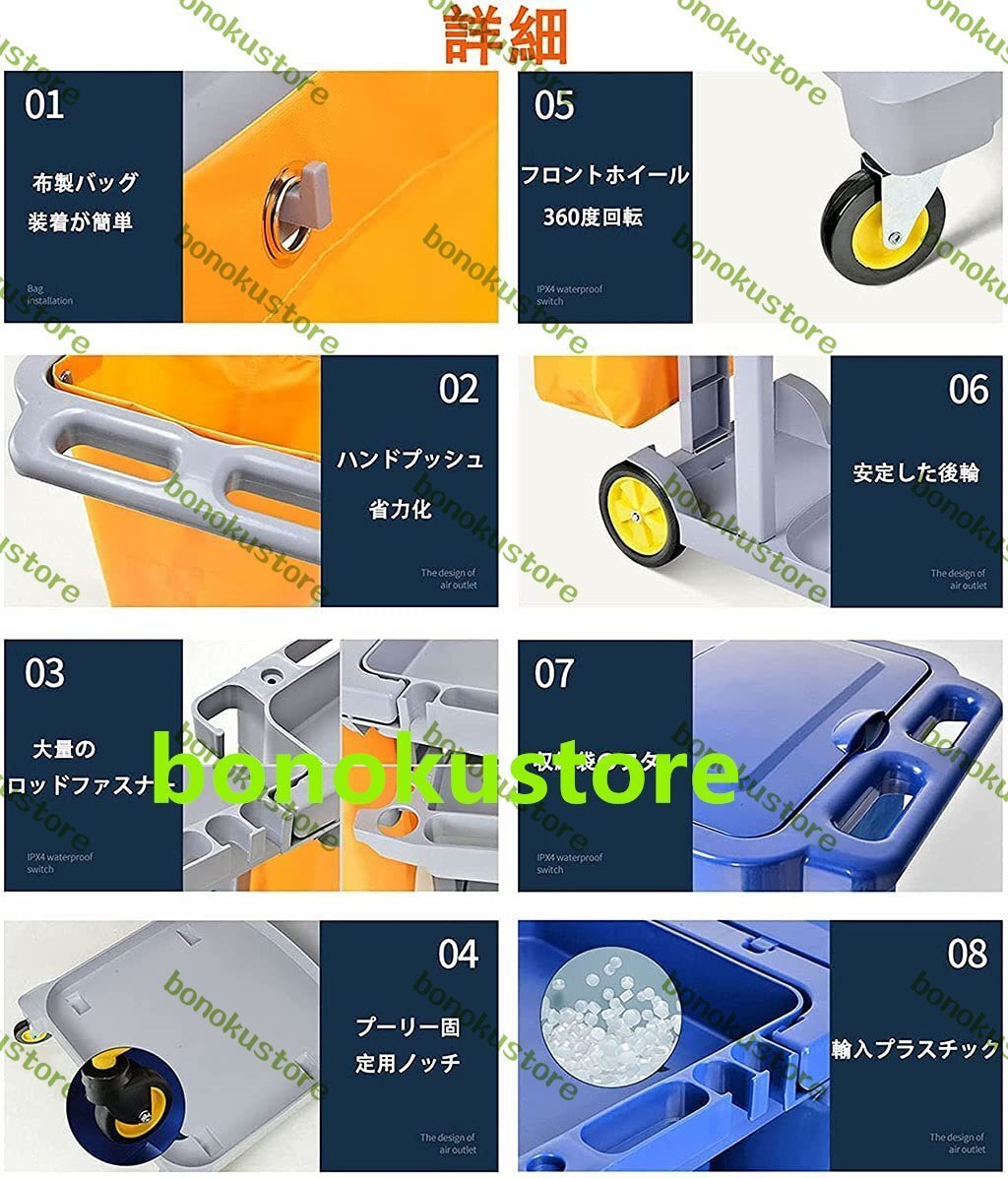 Product name: 多機能 掃除カート ツールカート ホテル清掃台車 学校 病院 工場 スーパーマーケットやモール レストラン ワゴン 蓋付き122x52x79cm