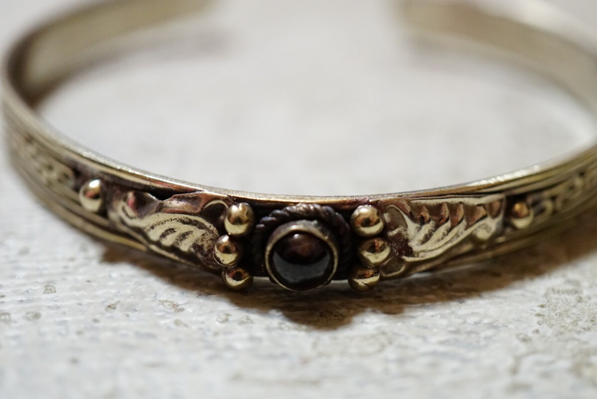 547 海外製 ガーネット バングル 腕輪 ヴィンテージ アクセサリー 宝石 カラーストーン 装飾品