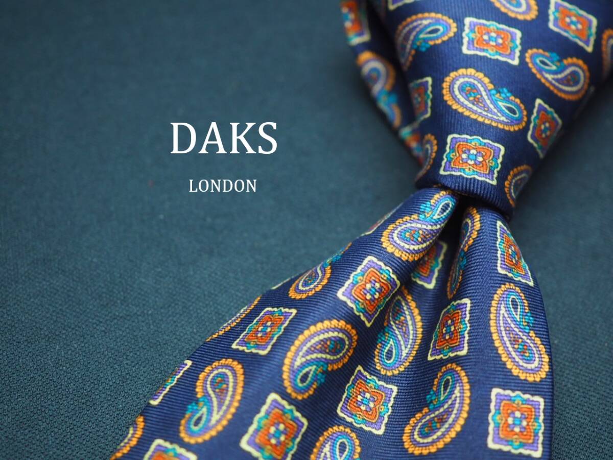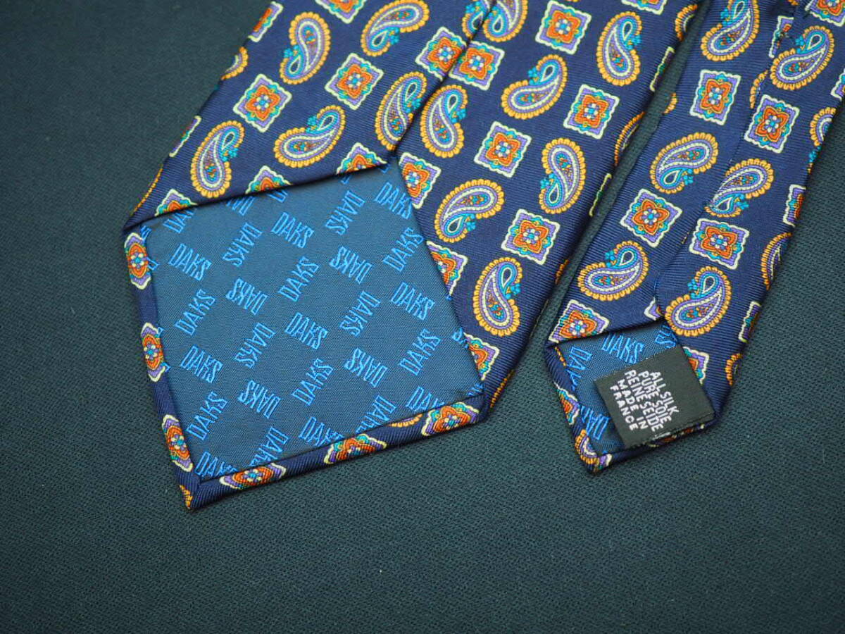 美品【DAKS ダックス】 D1425 ネイビー ペイズリー SILK ブランド ネクタイ 古着 良品