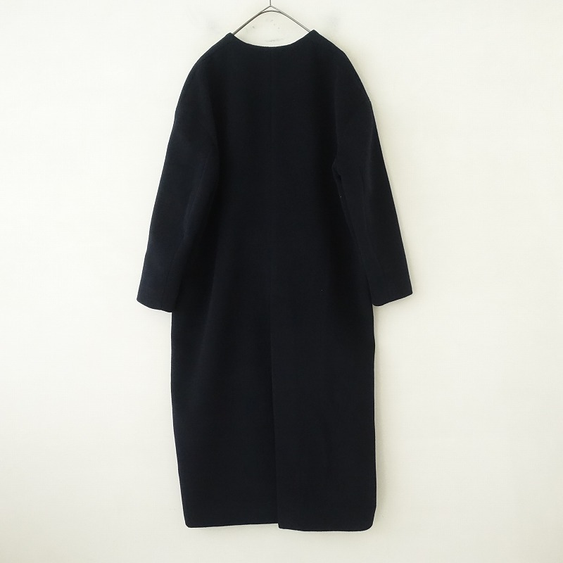 【2023AW/定価25.3万】ミナペルホネン mina perhonen *yoウールカシミヤメルトンVネックコート*38ネイビー(jk2-2502-506)【22C52】