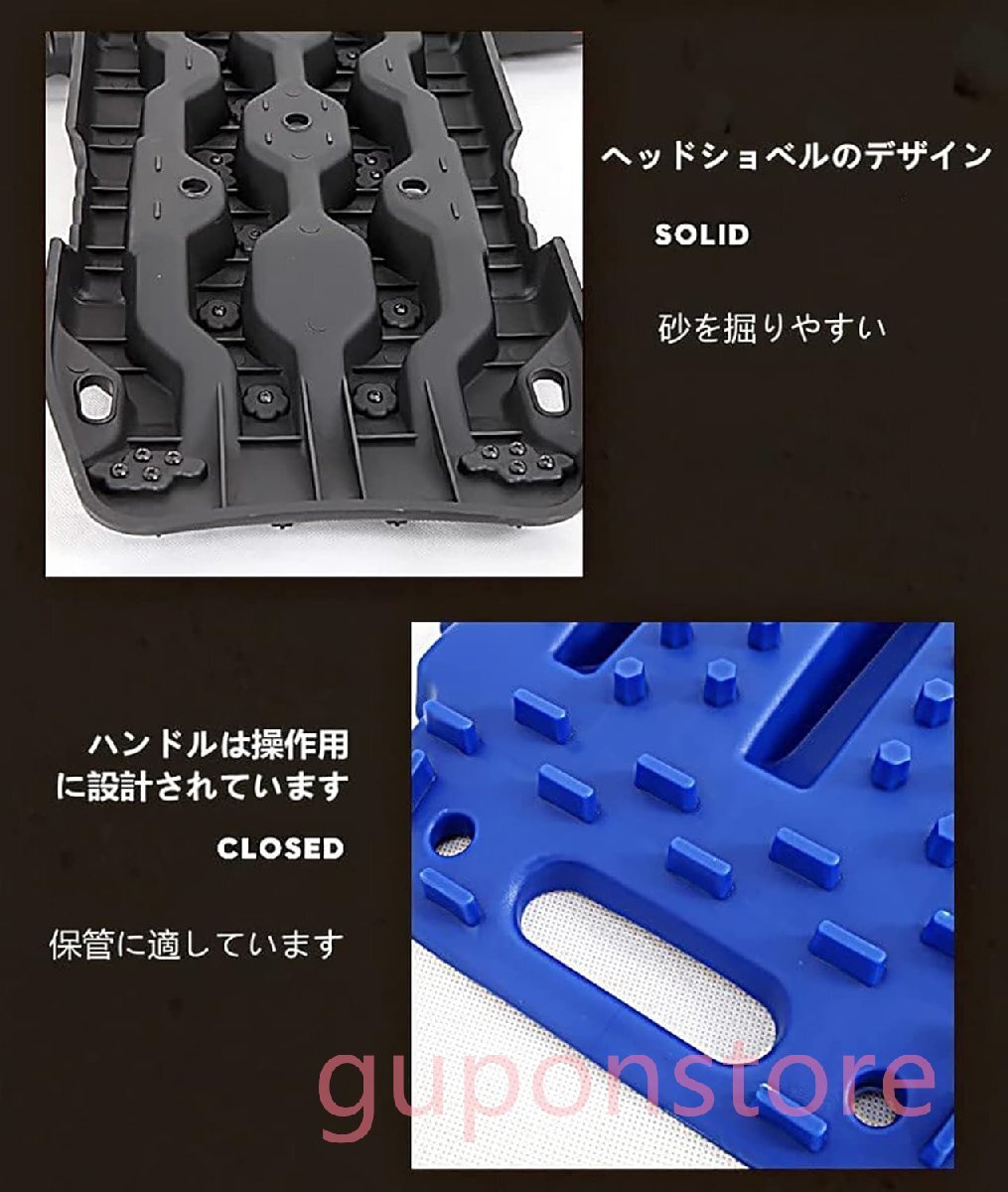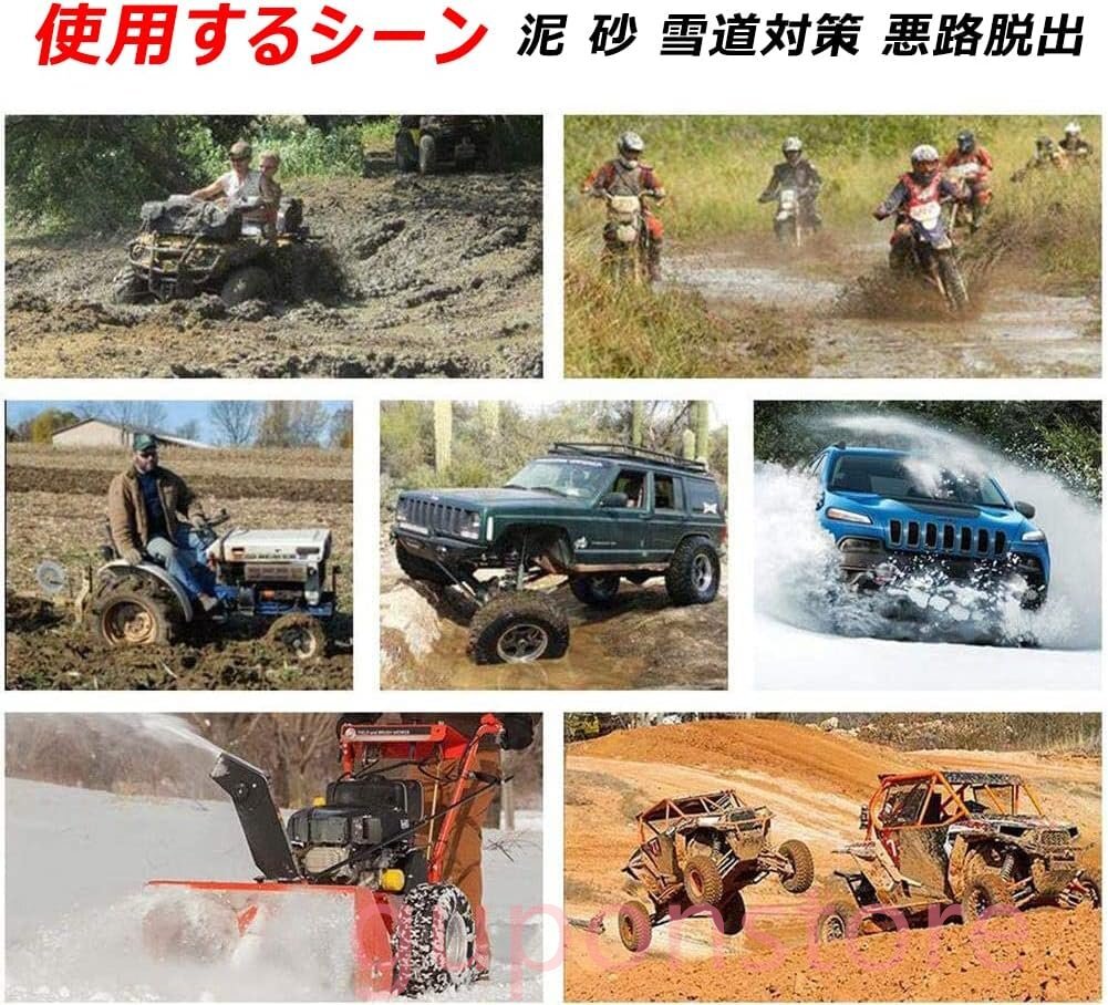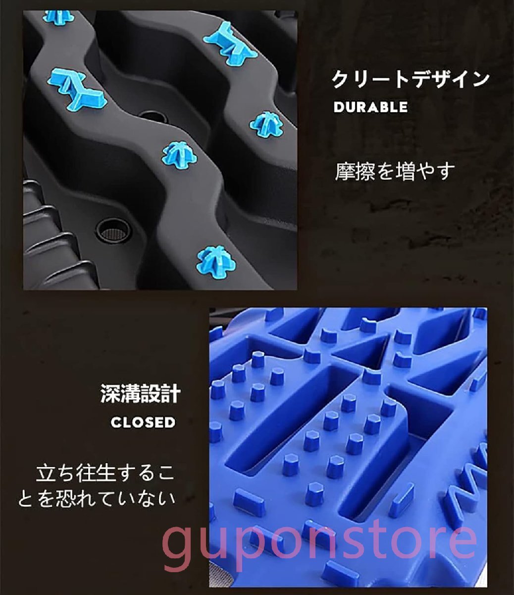 【全地形&適用性】車のタイヤが雪路、砂路、泥路などの悪路スタック時、タイヤの下に敷いて脱出を助ける滑り止めマット。 砂の道、泥道、積雪道、自動運転、オフロードに適しています。さまざまな地形、季節、高温および低温環境で使用できます。オフロード車に最適で、使いやすいです。