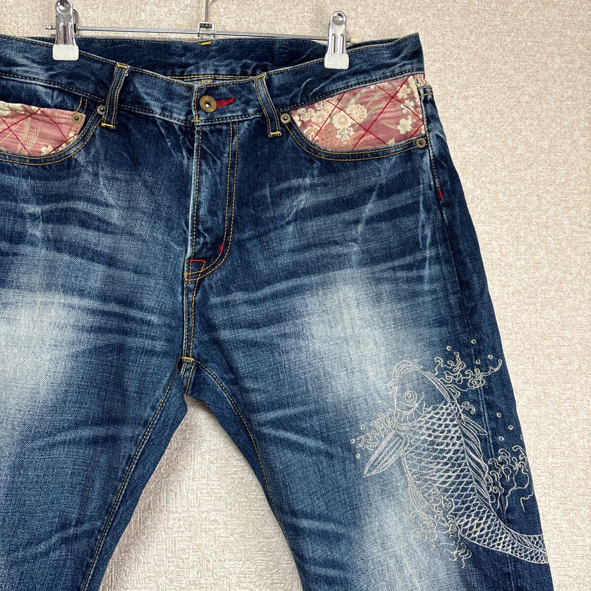 Product name: 【岡山デニムブランド】 備中倉敷工房 エターナルジーンズ 鯉刺繍 和柄 鬼ヒゲ デニム ハーフパンツ SIZE 34 メンズLサイズ相当
