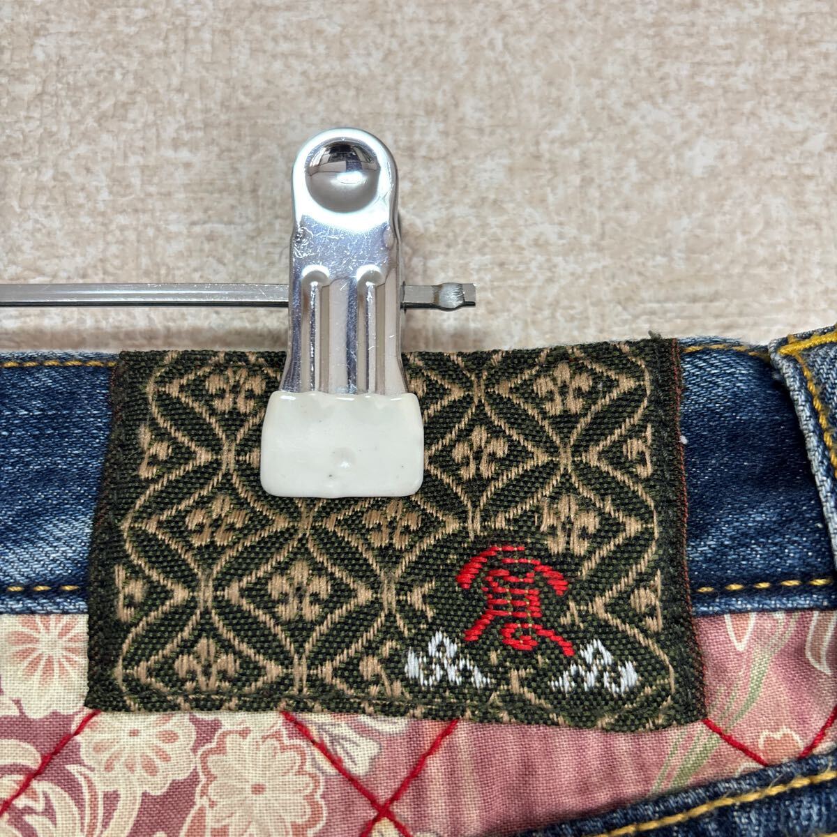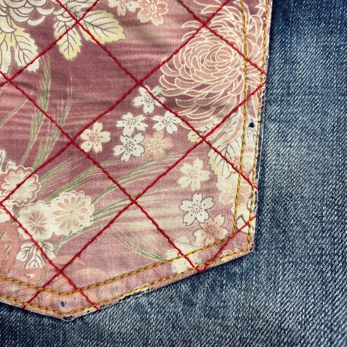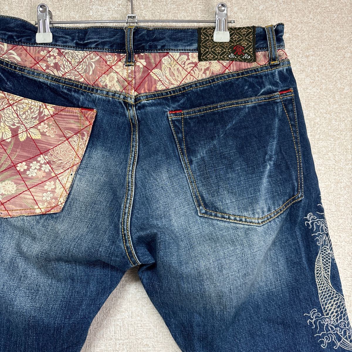 バックポケットの、和柄部分に擦れほつれあります。