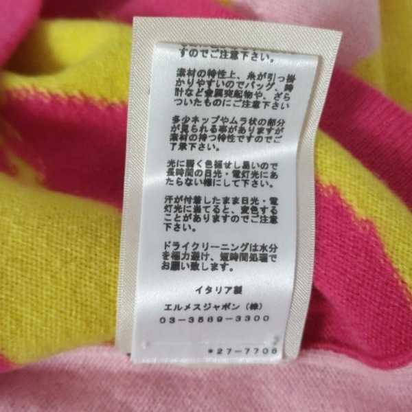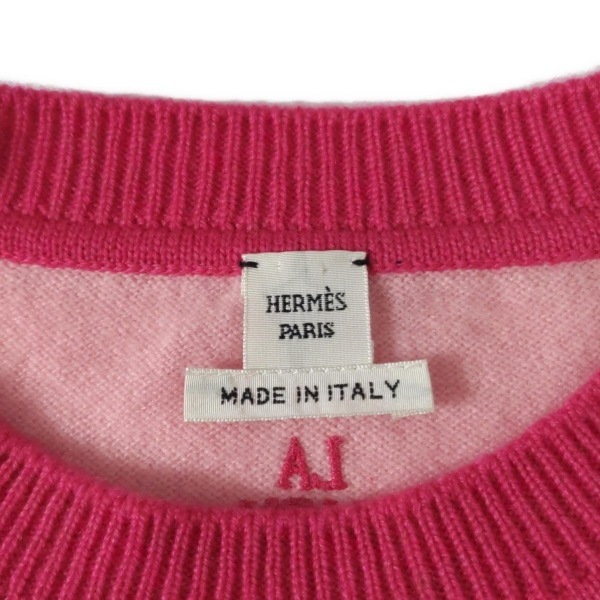 Product name: エルメス HERMES 長袖セーター/ニット サイズ34 S - ピンク×イエロー レディース クルーネック/LA PROMENADE DU MATIN/2022AW 美品