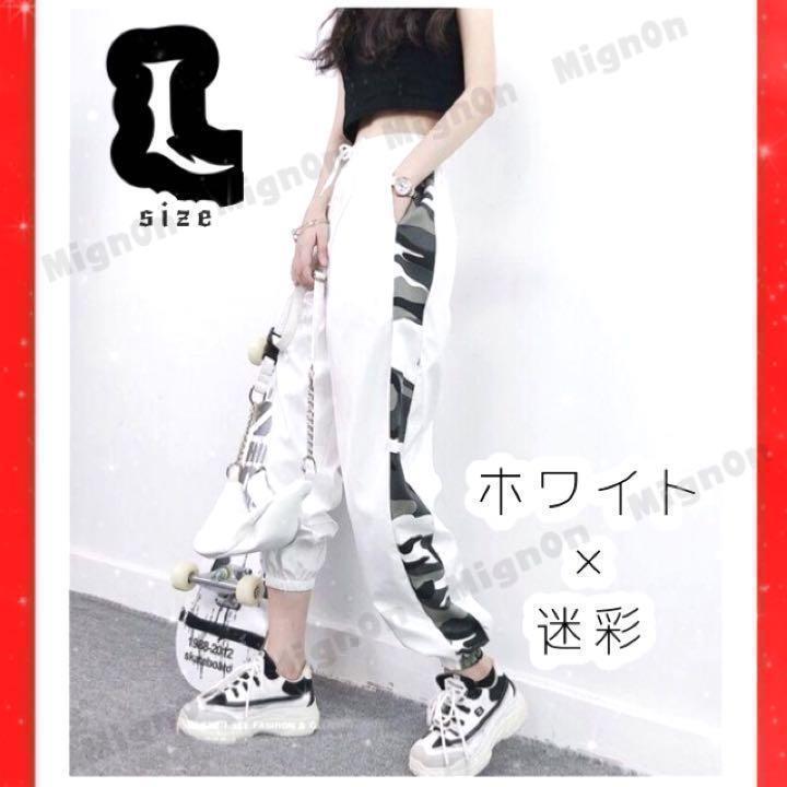 【白 L】ジョガーパンツ 迷彩 ストリート系 ダンス ウェア 練習着 ヨガ
