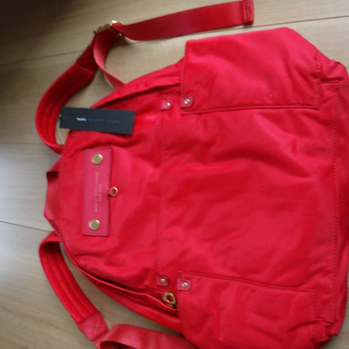 マークジェイコブスの赤×ゴールドのリュックサックで、ロゴ入りタグ付きです☆サイズは個人寸法で横30縦40マチ10センチ位、トップはゴールドチャックトップ(ロゴ刻印入り)のチャック式、両サイドにドリンクホルダー付き、内側に3つ(内1つはチャック式)、表面に大きめポケット、パスケースも付いています♪男女年齢問わずに使えると思います☆新品タグ付き未使用品ですが、長期個人保管につき、多少の汚れや擦れ、シワや傷等ある場合がありますので、ご理解ある方、ノークレームノーリターンでお願いします!