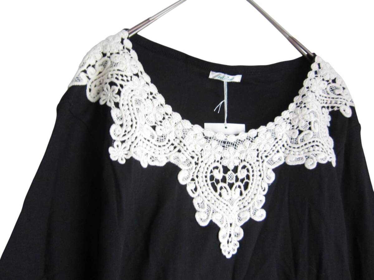 Product name: ★送料無料 G13 新品 【3L】 riRest ブラック レース 7分袖 カットソー 大きいサイズ ゆうパケットポスト 上品