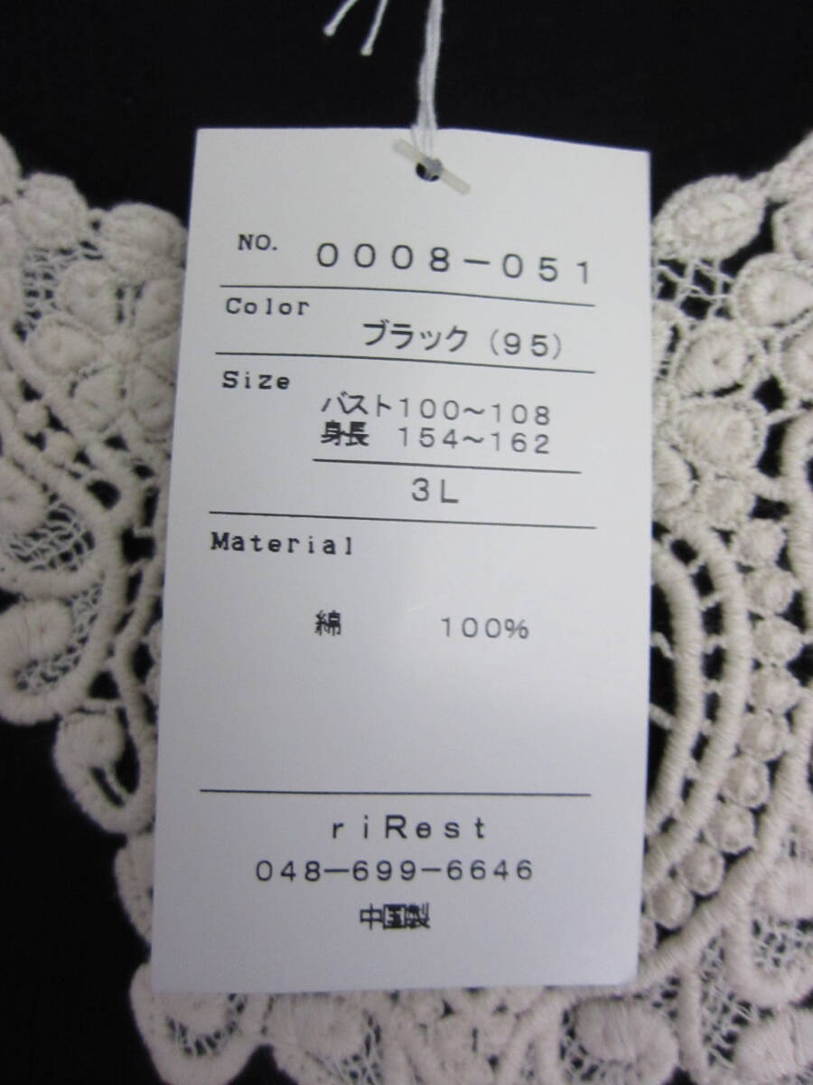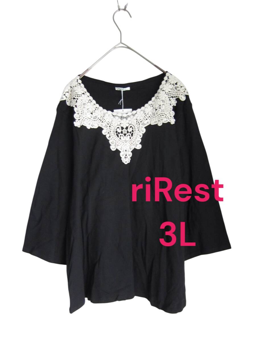 ★送料無料 G13 新品 【3L】 riRest ブラック レース 7分袖 カットソー 大きいサイズ ゆうパケットポスト 上品