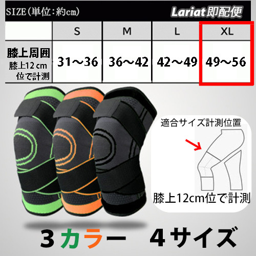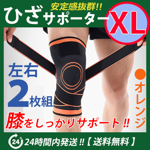膝サポーター 左右2枚セット【XLサイズ】オレンジ 伸縮性・通気性バツグン ベルト調節 マジックテープ 加圧式 ひざサポーター 〇