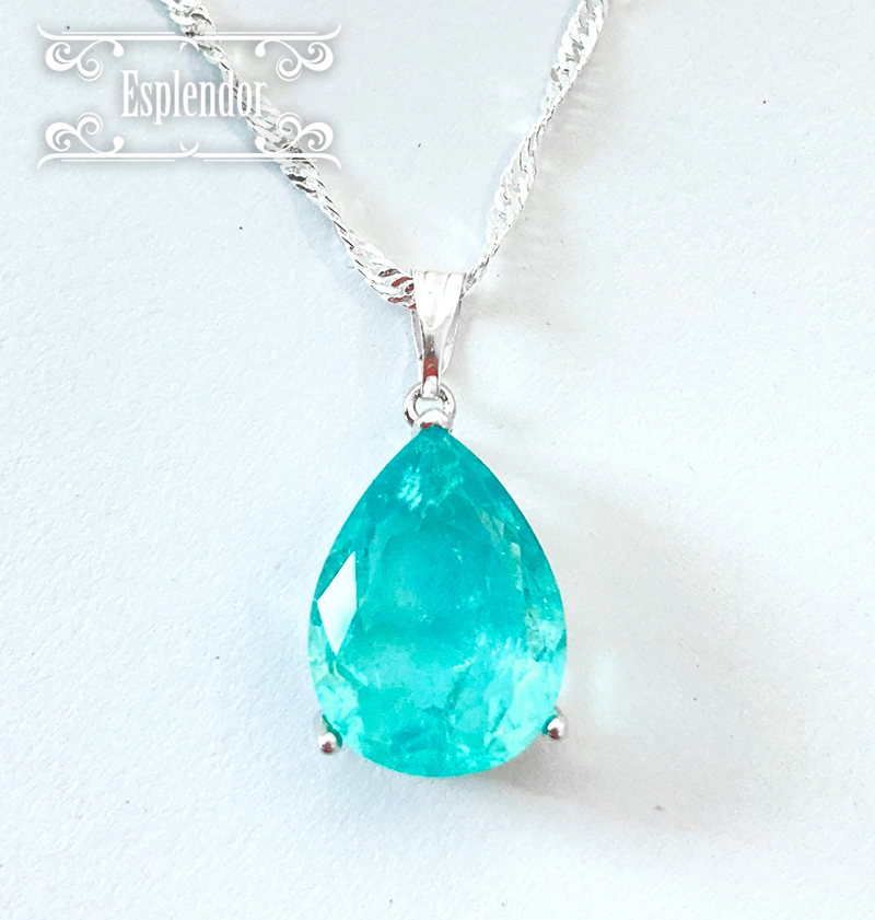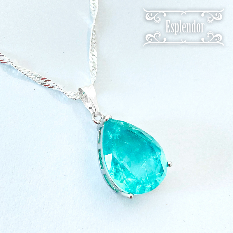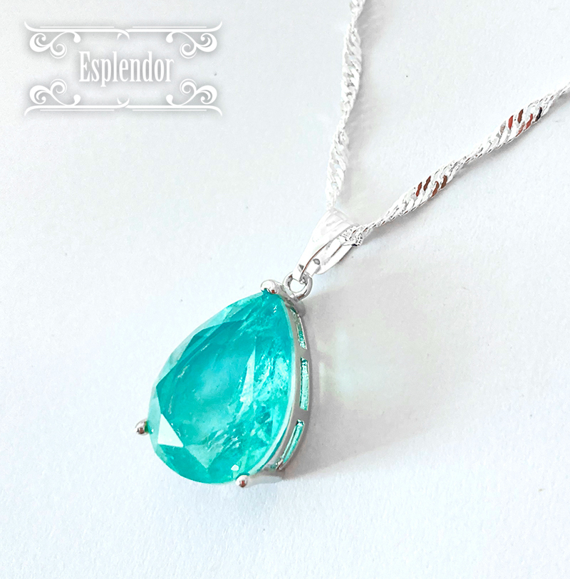 Product name: アフリカ産 宝石質 天然 ネオンブルーグリーンアパタイト ティアドロップ ペンダントネックレス
