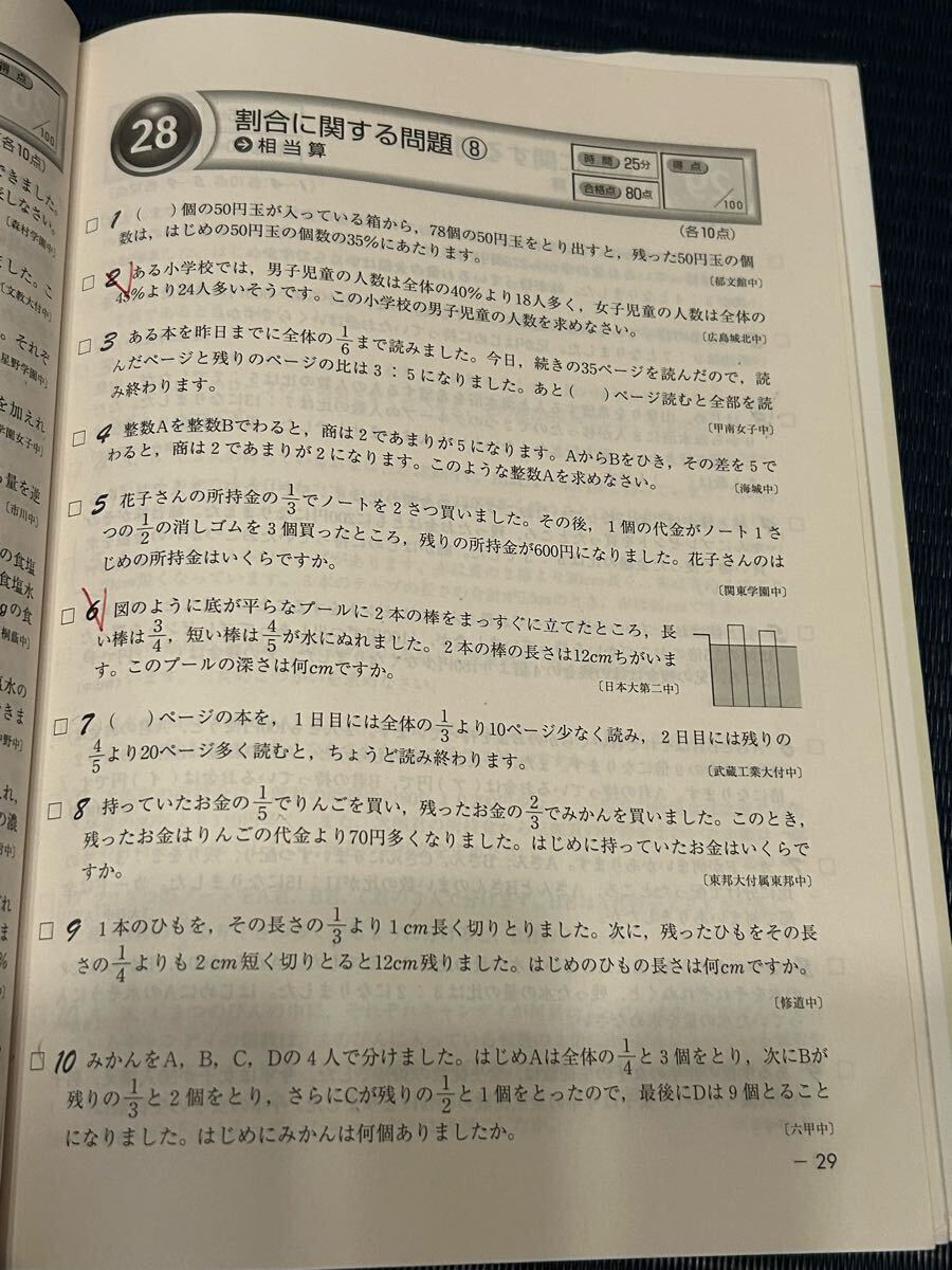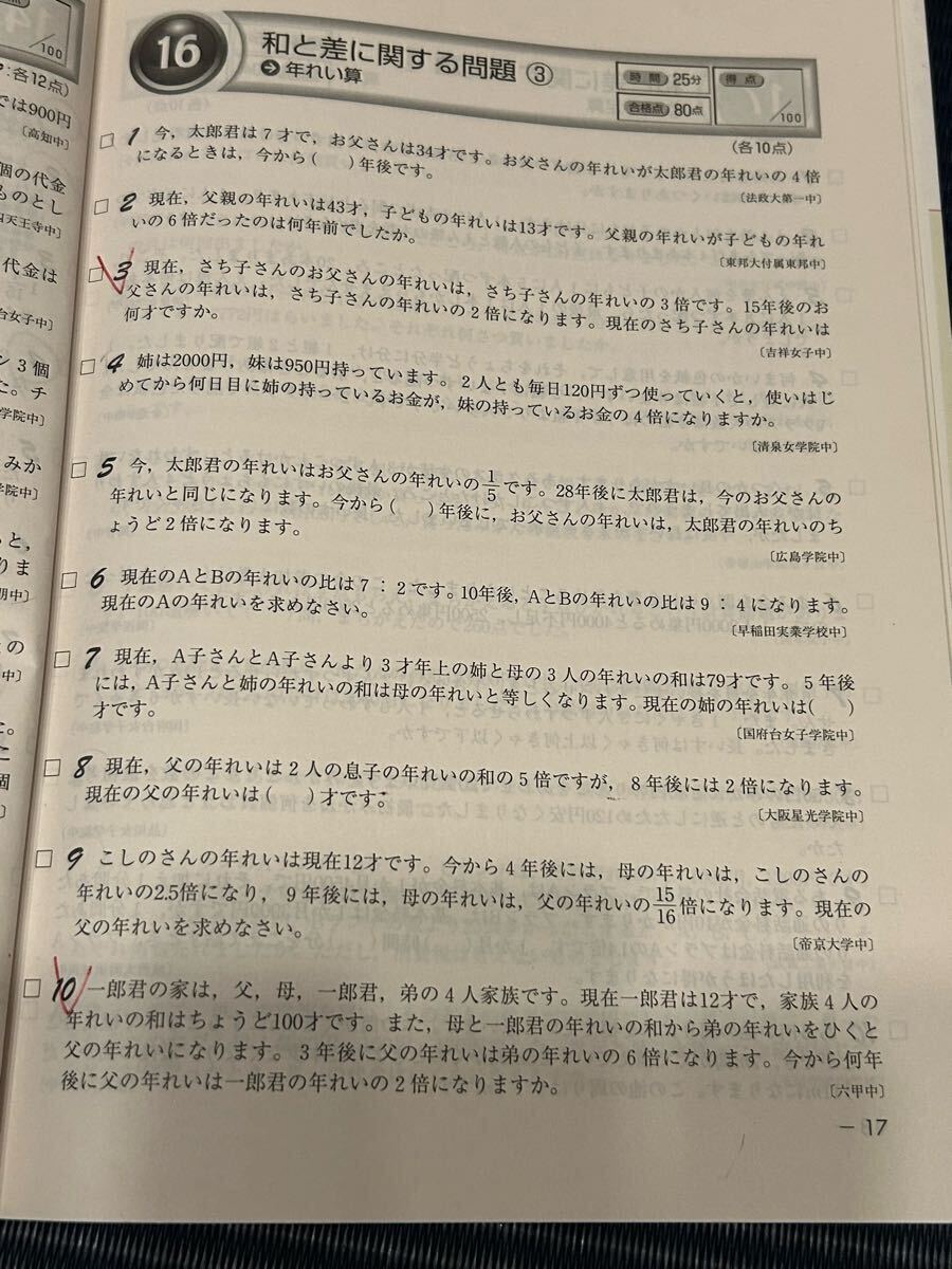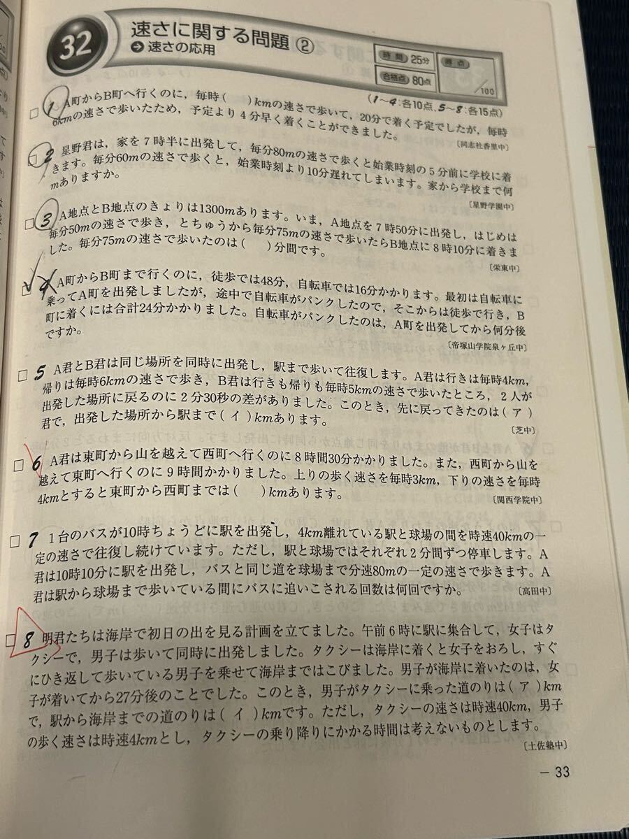 問題番号やページに赤丸やチェックを入れている箇所が何ヶ所かあります。