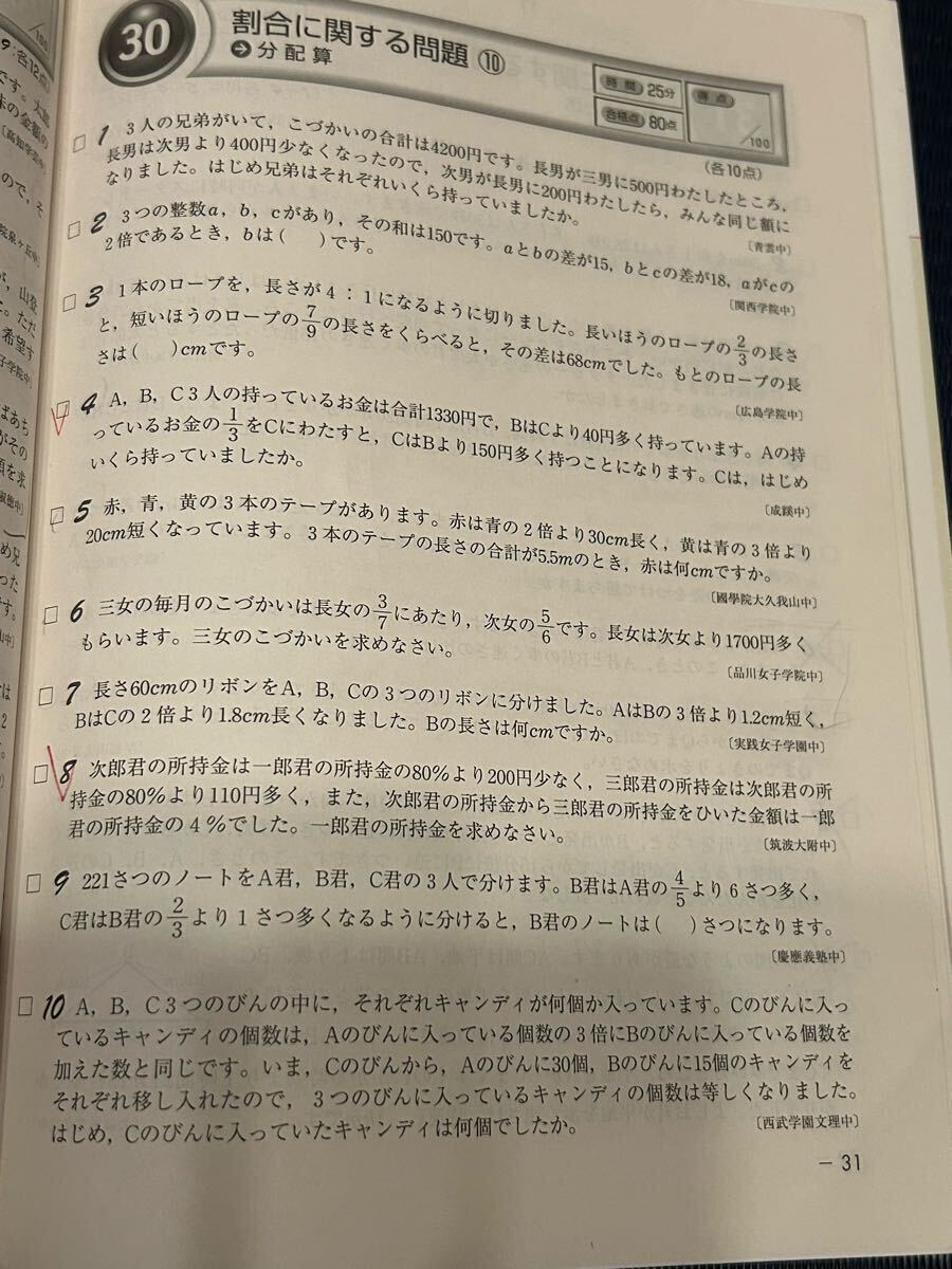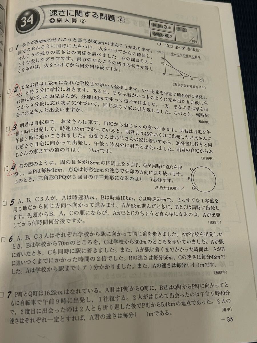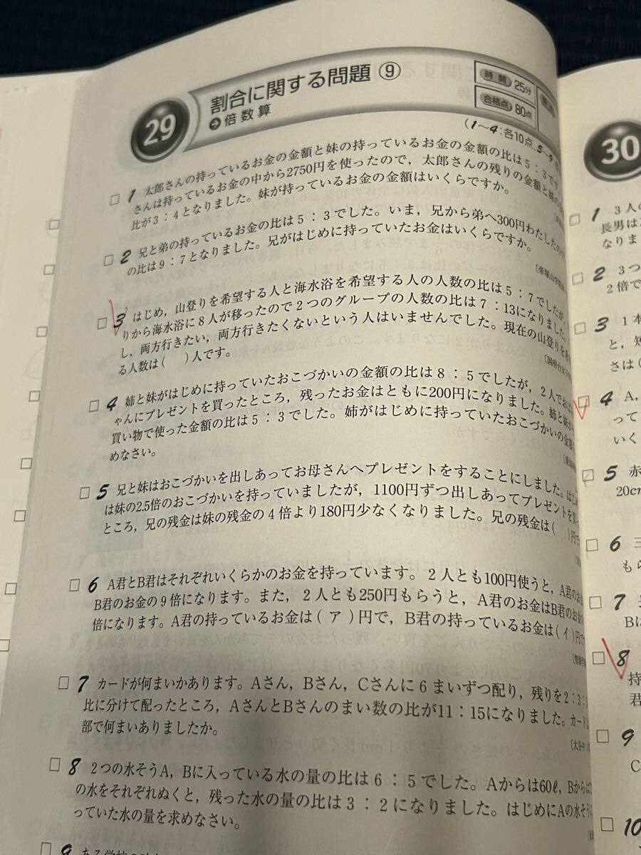 問題番号やページに赤丸やチェックを入れている箇所が何ヶ所かあります。